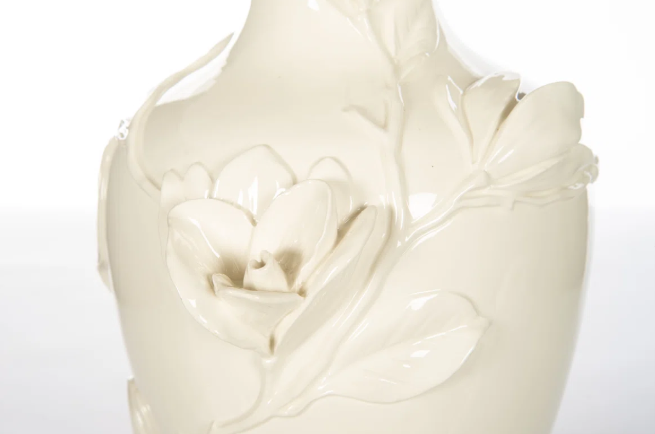 Magnolia Bloom Ceramic Table Lamp with Gold Accents