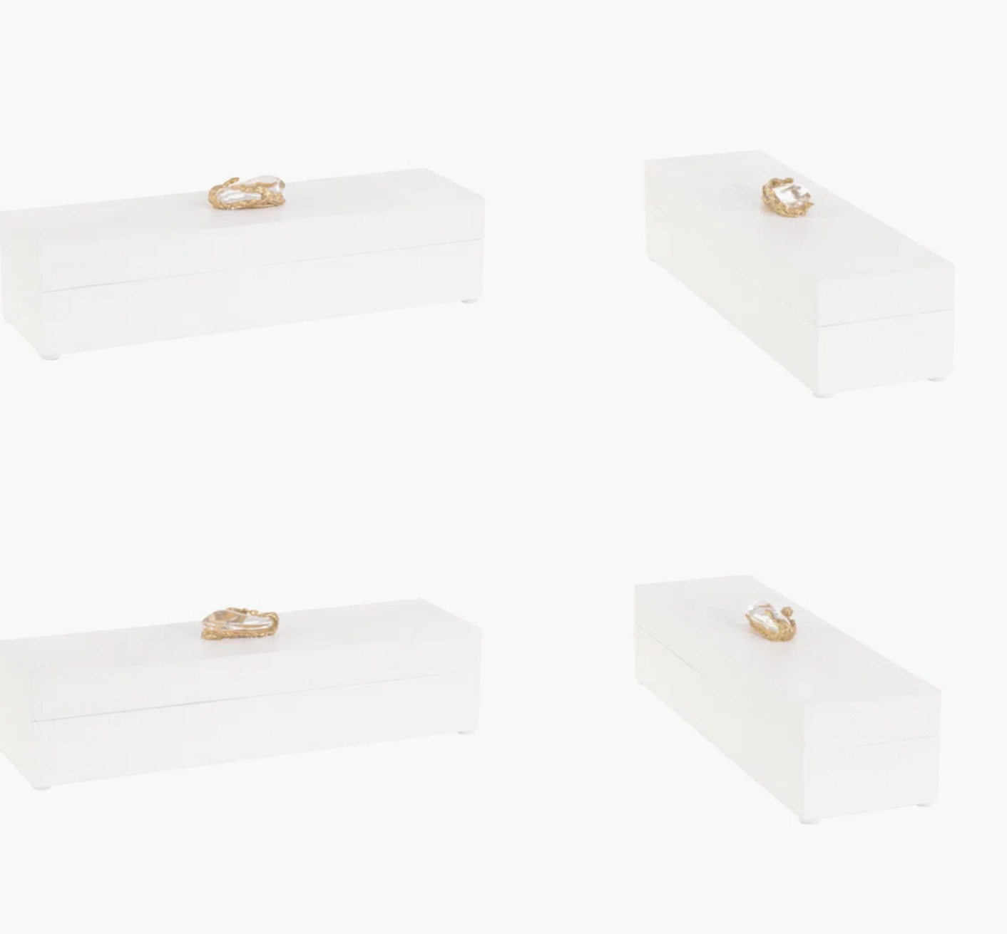 White Shagreen Decorative Box with Crystal and Brass Accent