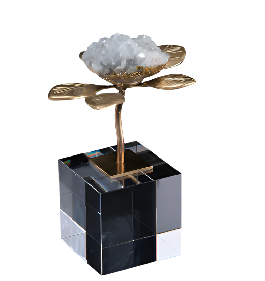 Cascading White Orchid Arrangement in Silver Urn with Blue Celestite Accent