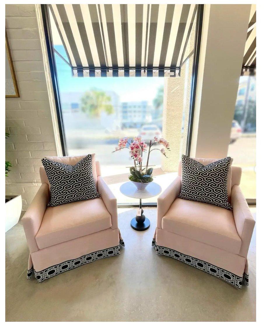 Black Frame Occasional Chair with White Performance Upholstery & Picture Box Trim