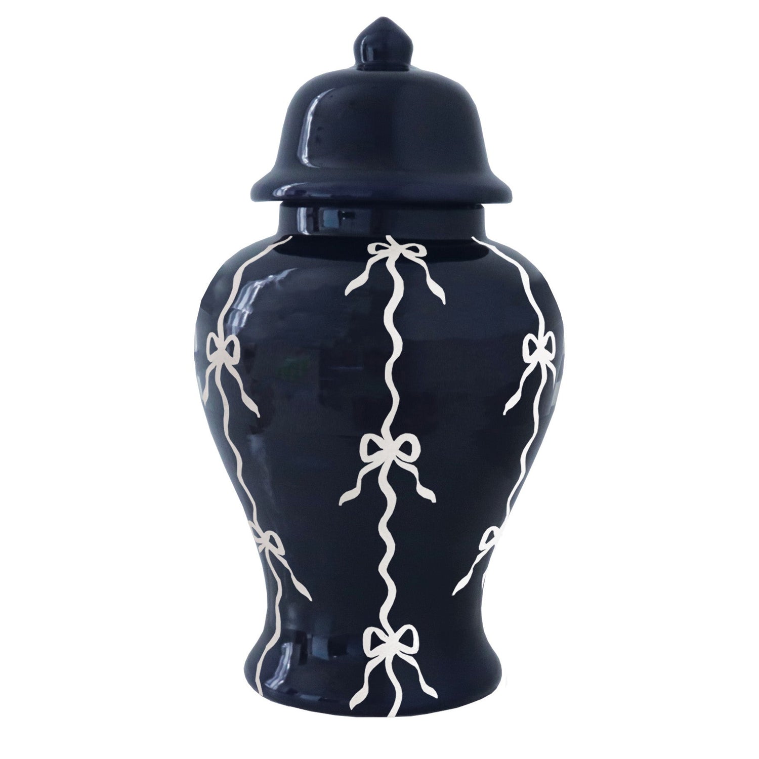 Bow Stripe Ginger Jars in Navy Blue (Various Sizes)
