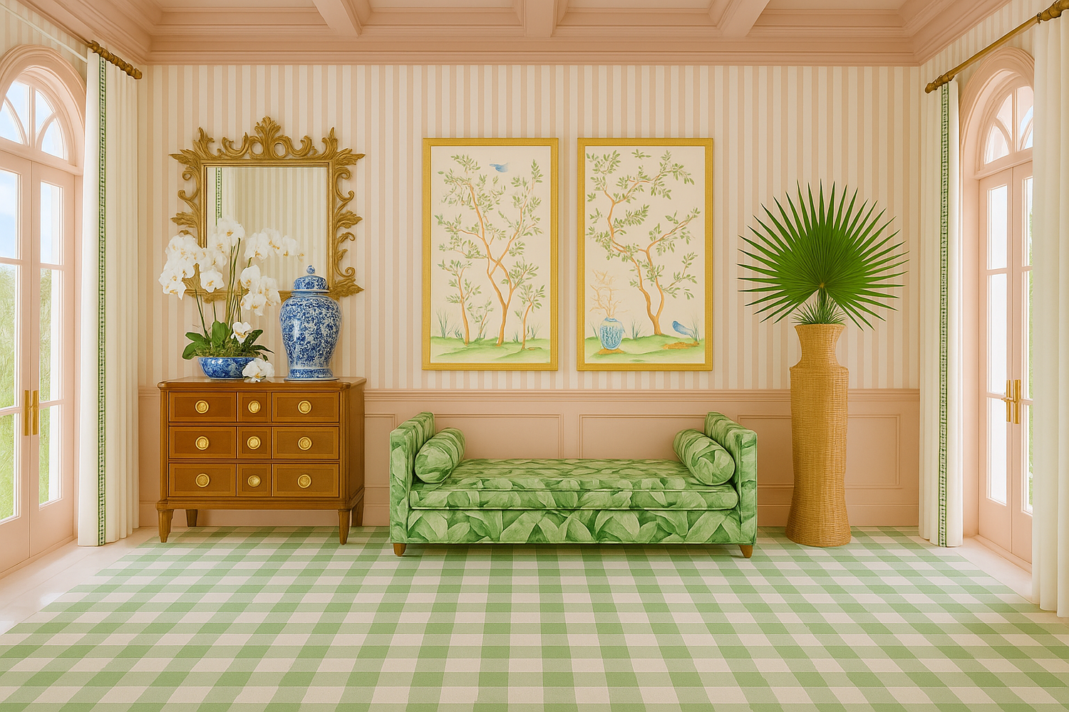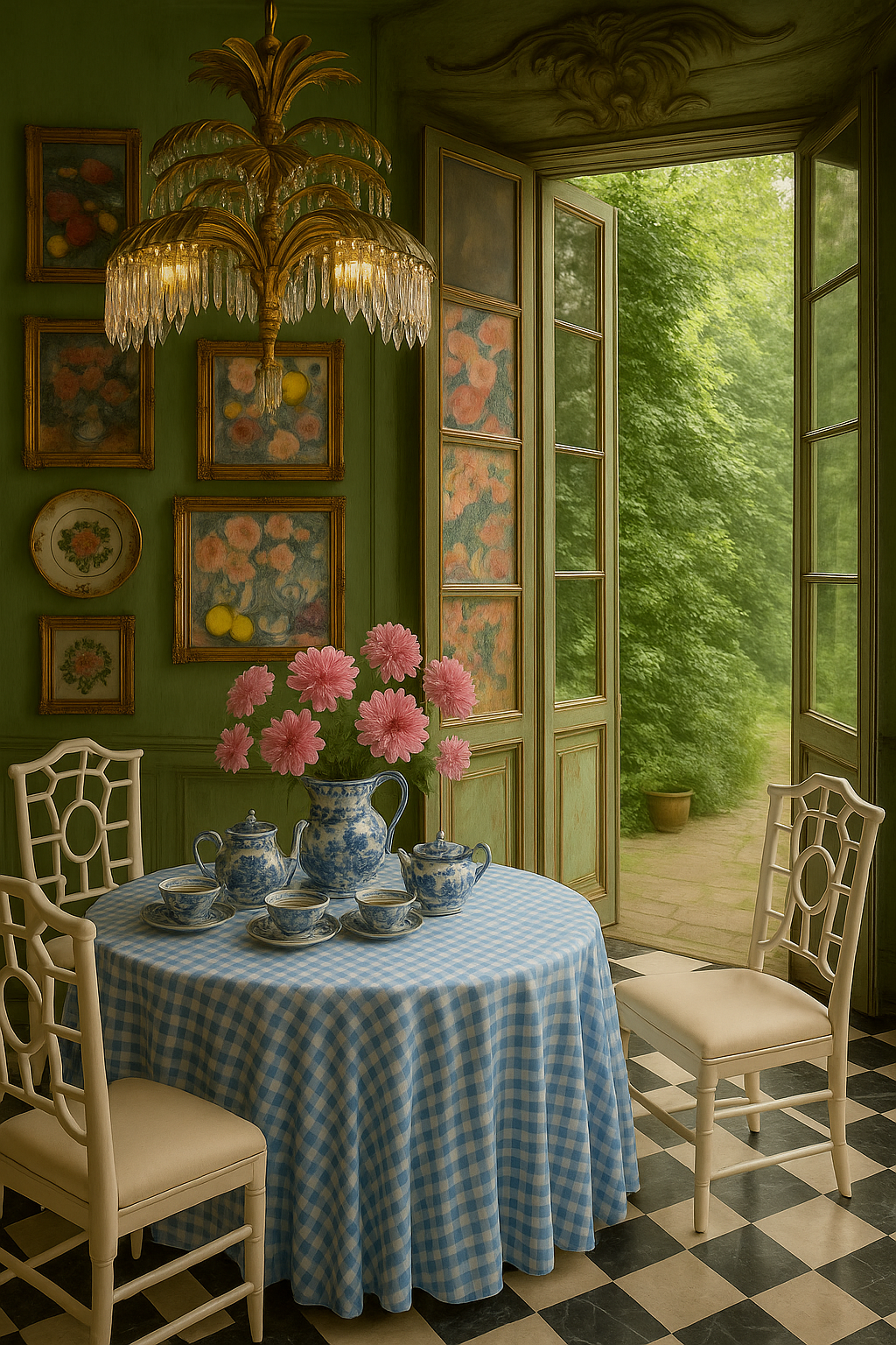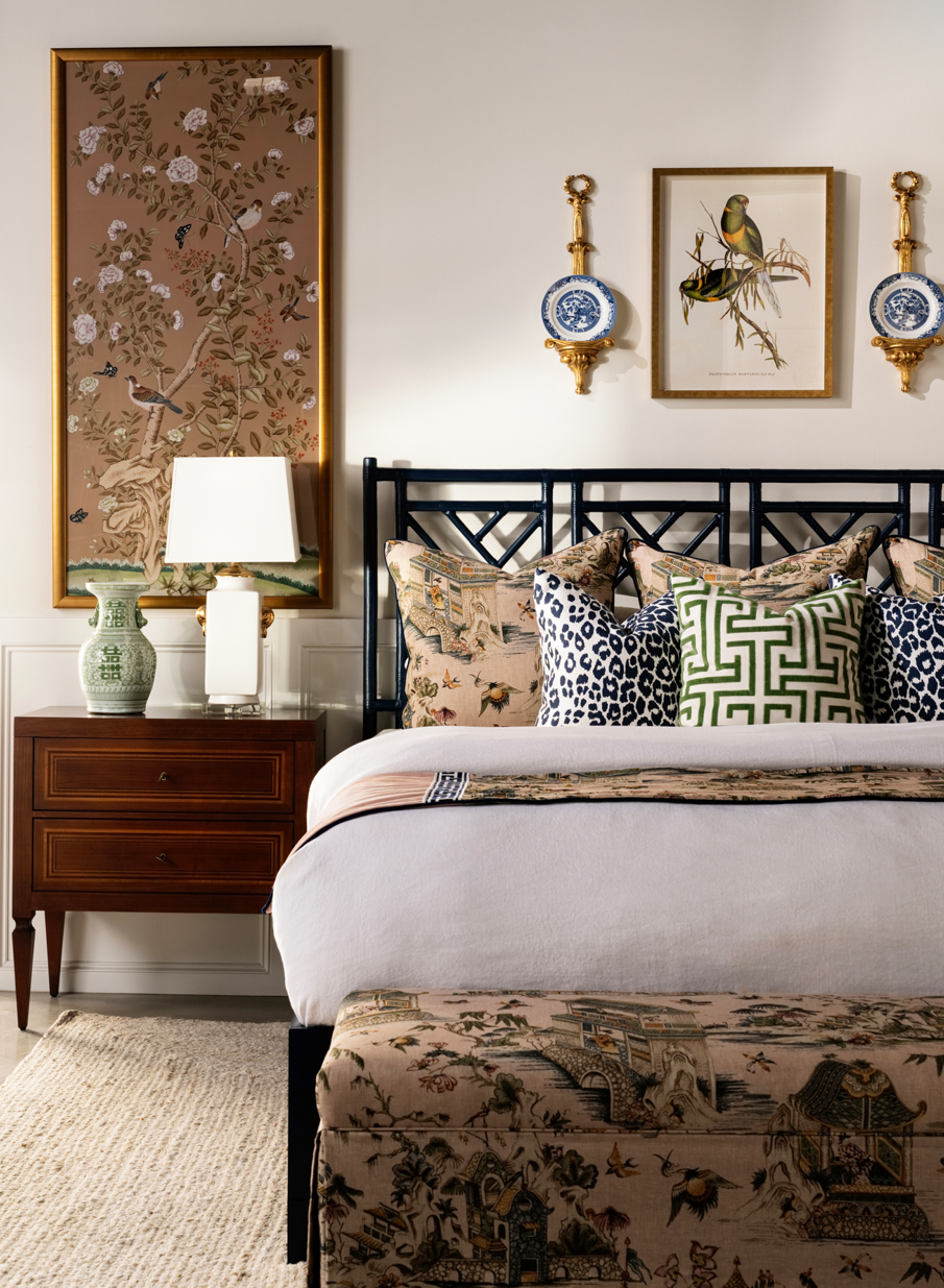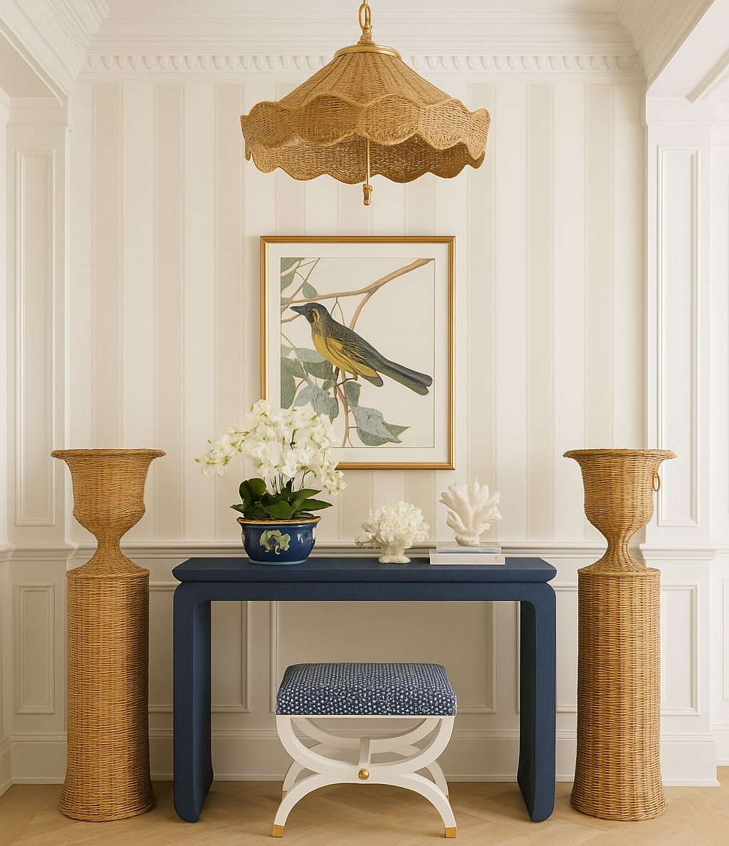 Grandmillennial style celebrates tradition with a youthful twist. Mixing heirloom patterns, chinoiserie, rattan, and classic silhouettes with fresh color palettes and playful details, it brings old-world charm into the present. The result is a look that feels layered, personal, and inviting — equal parts nostalgic and new.
