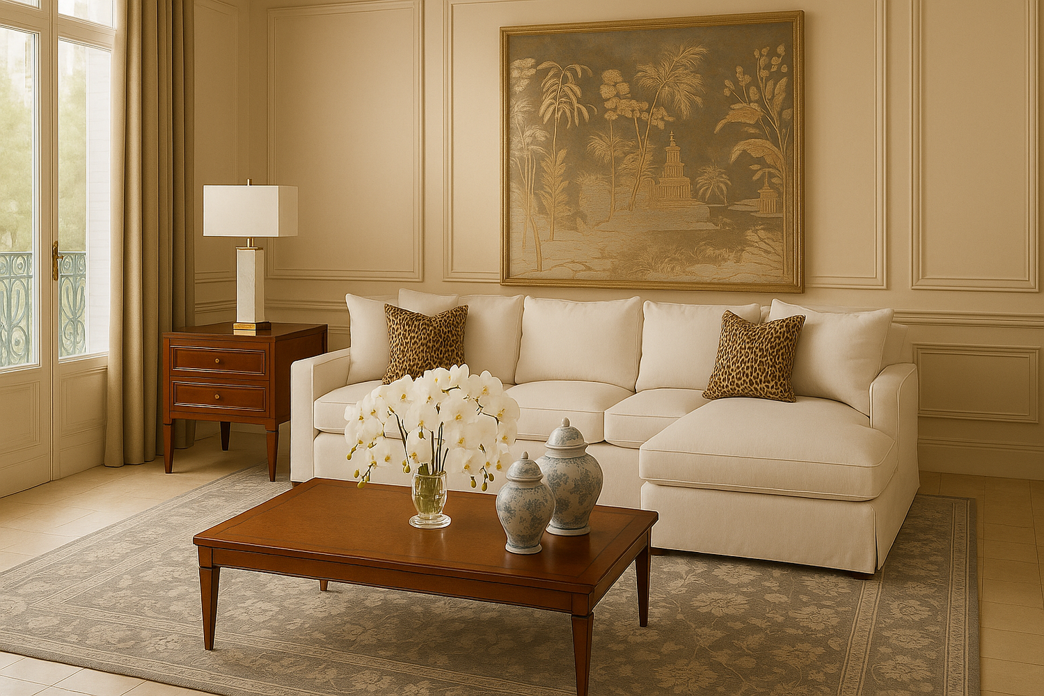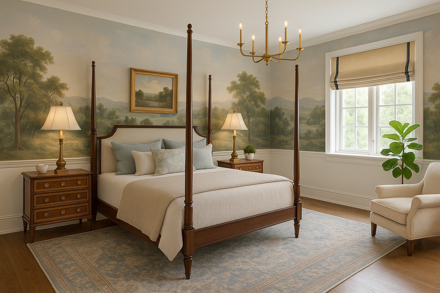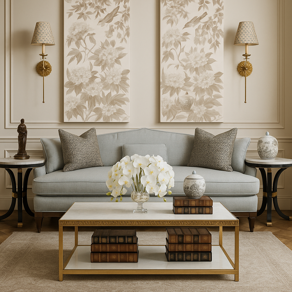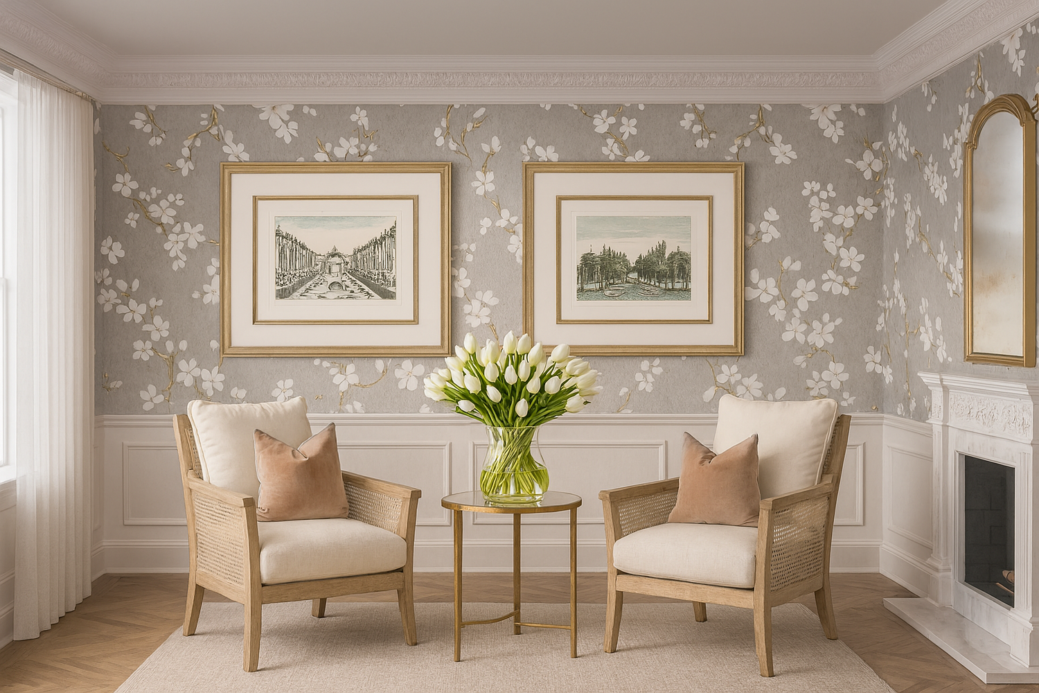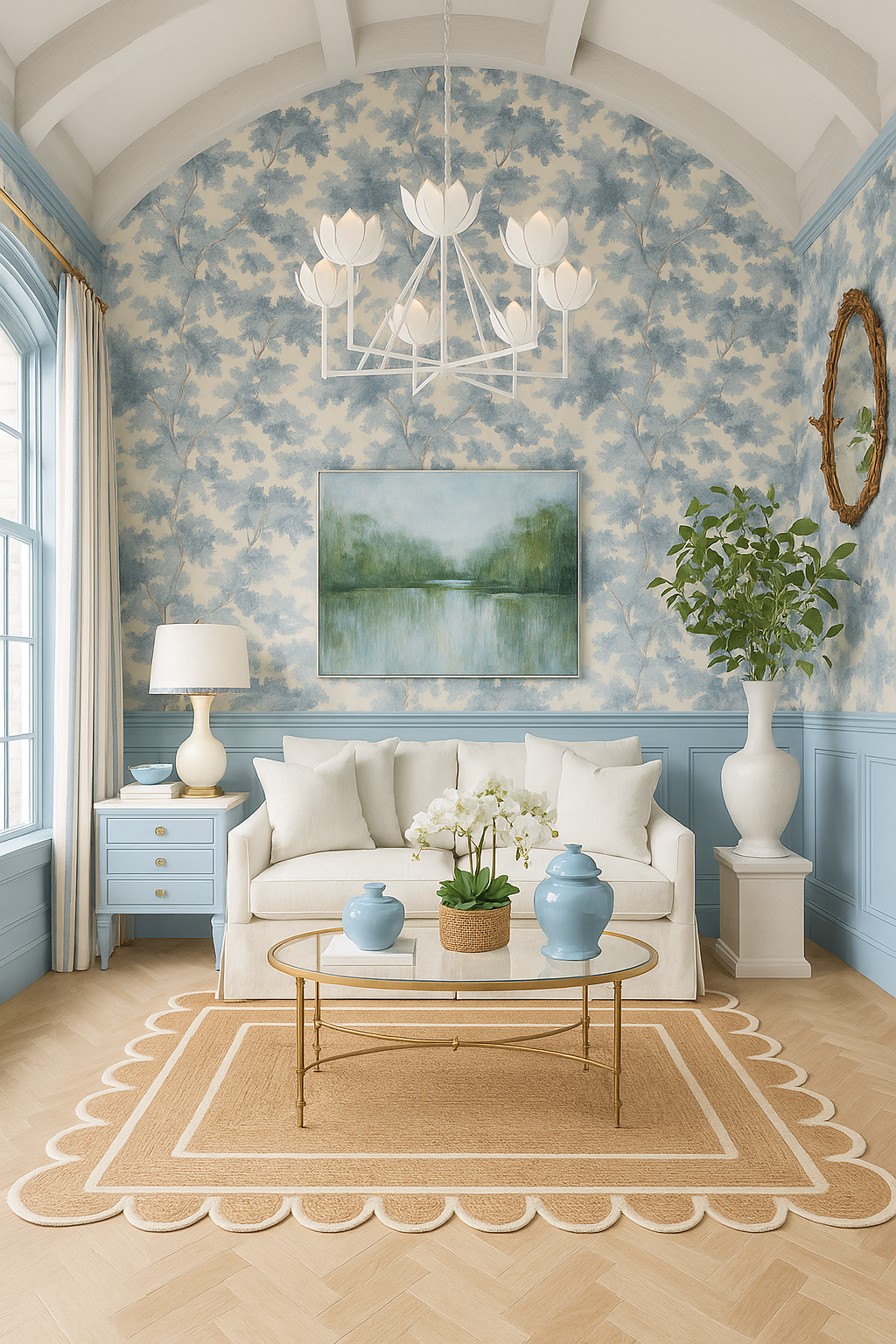 Grandmillennial style celebrates tradition with a youthful twist. Mixing heirloom patterns, chinoiserie, rattan, and classic silhouettes with fresh color palettes and playful details, it brings old-world charm into the present. The result is a look that feels layered, personal, and inviting — equal parts nostalgic and new.