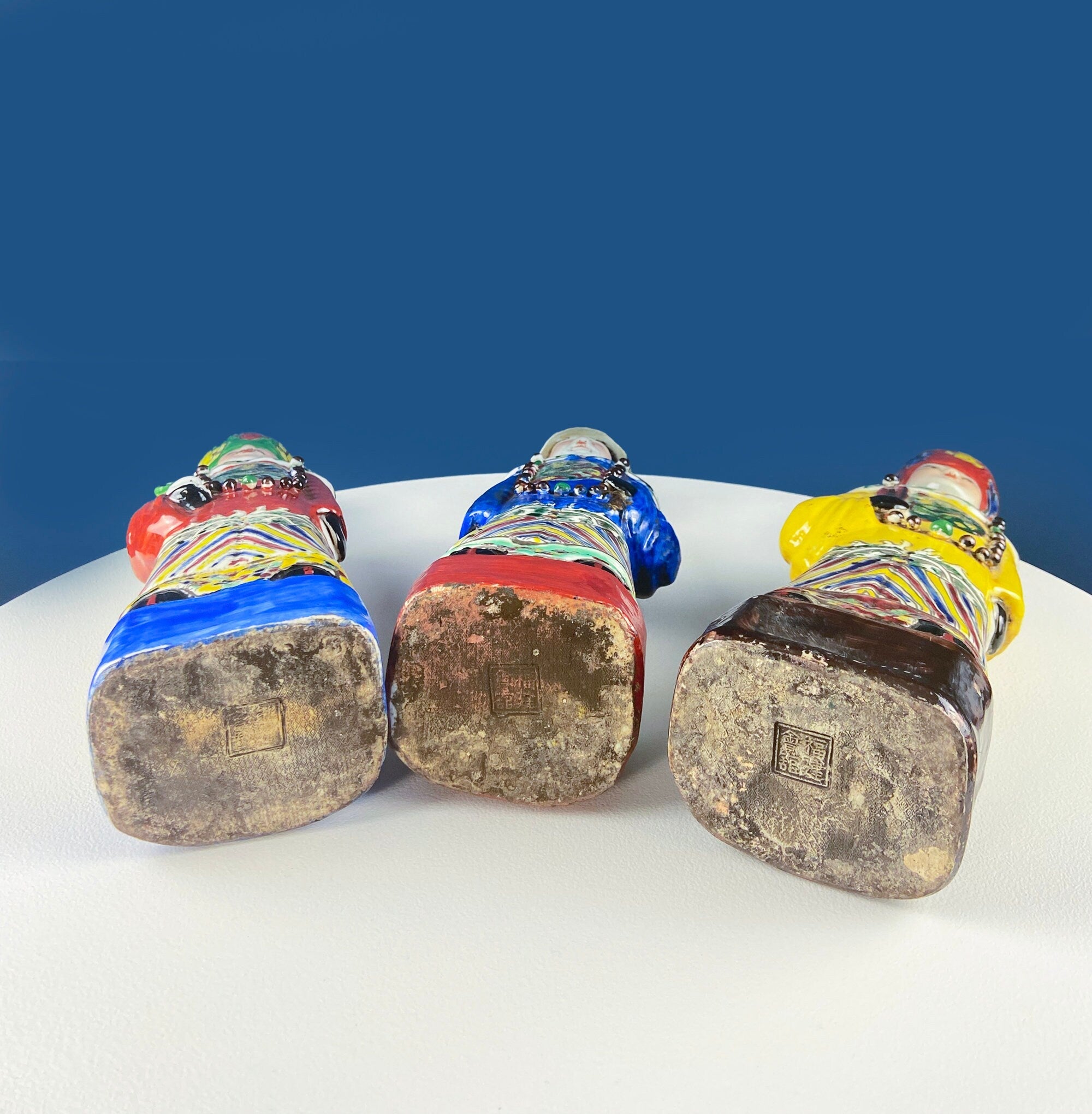 3 Ceramic Sculptures of Royal Advisors. Collection of Large Statuettes of Immortals. Asian Men in Traditional Chinese Clothing. Yellow, Blue, Red Collectible Home Decor. Gift for Him or Her. Asian Art. Excellent Condition. Marked by the Maker.