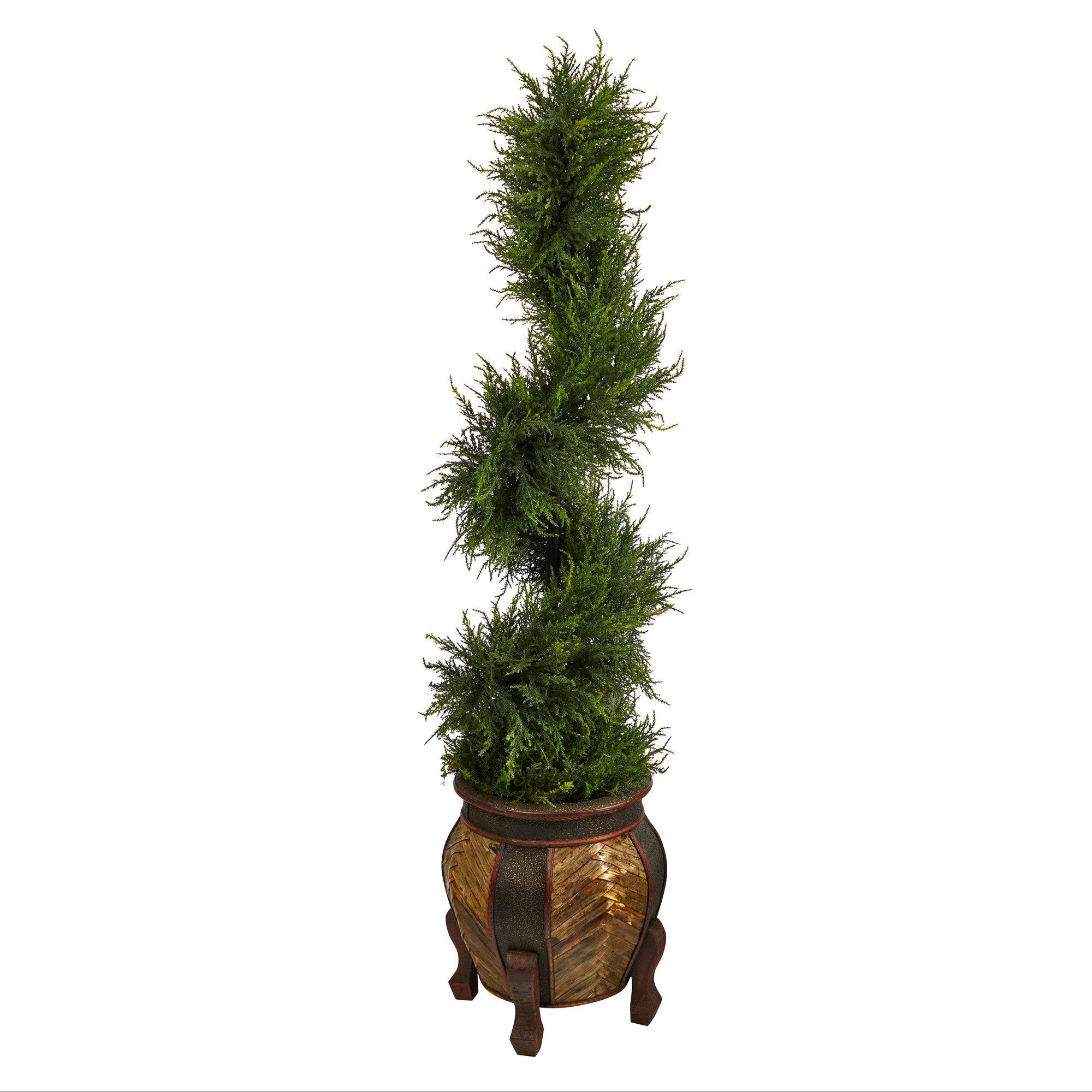 Create a cozy scene during your next dinner party with this Spiral Cypress Artificial Tree. Realistic, groomed cypress fronds are shaped into a spiral silhouette, nestled in between, are 80 clear LED lights - that create an intimate glow. Recreate the look of your favorite outdoor restaurant from the comfort of your own backyard or patio. Standing 4.5' from a decorative planter, curate in indoor / outdoor areas that need some light and shape. Perfect for apartments, balconies, backyards or patios.
