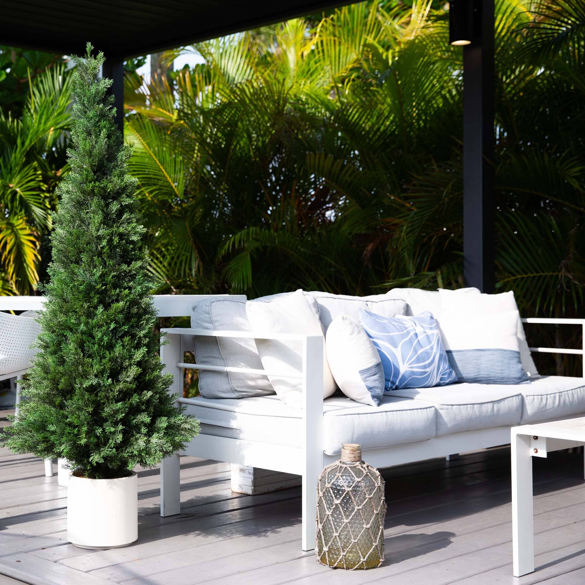 5’ UV Resistant Artificial Cedar Tree in Decorative White Planter (Indoor/Outdoor)