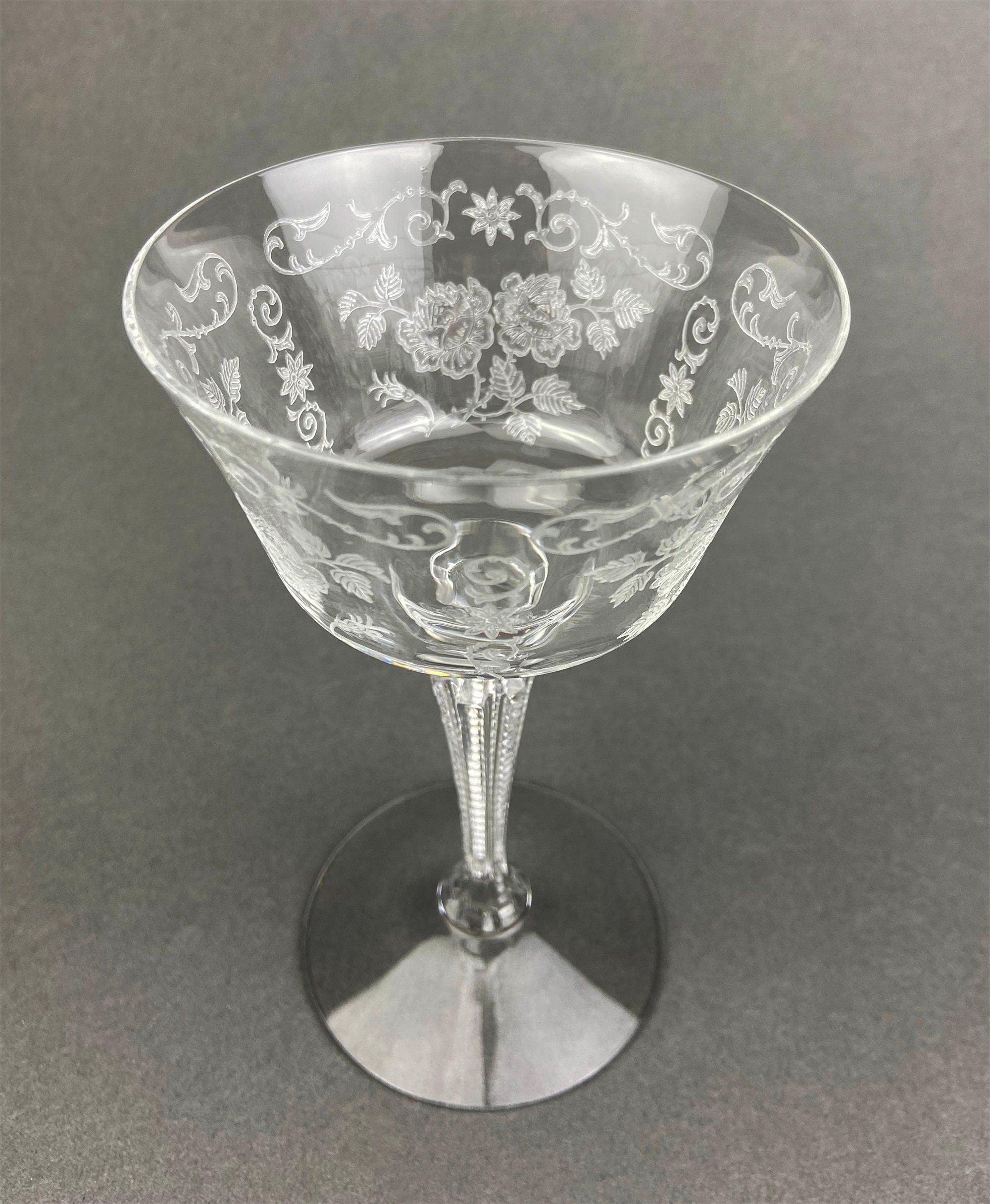 Antique Tall Sherbet Crystal Glasses by Fostoria. Etched Midnight Rose Pattern. Set of Six, 4 oz, Glassware. Replacements. Collectibles. Fine Dining.