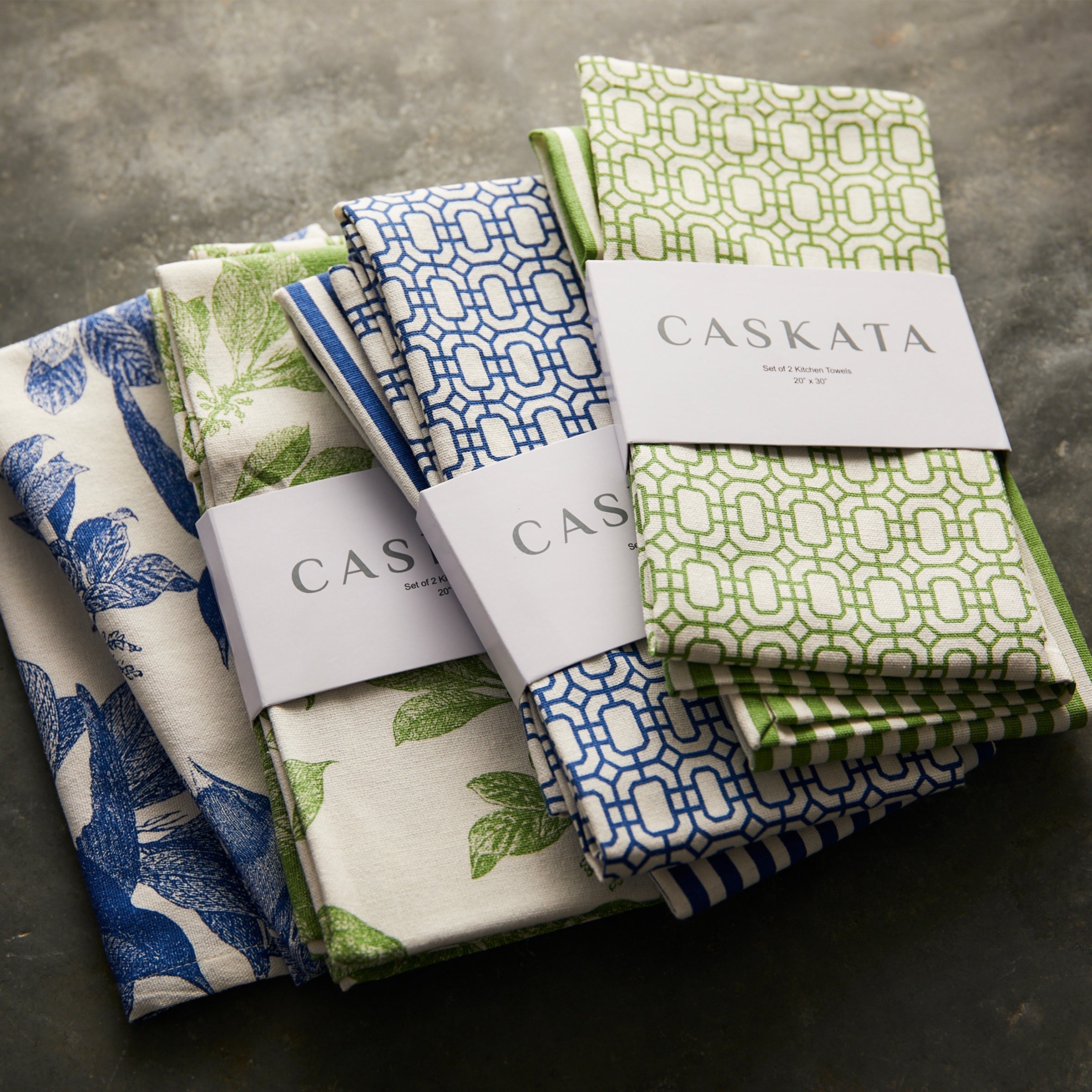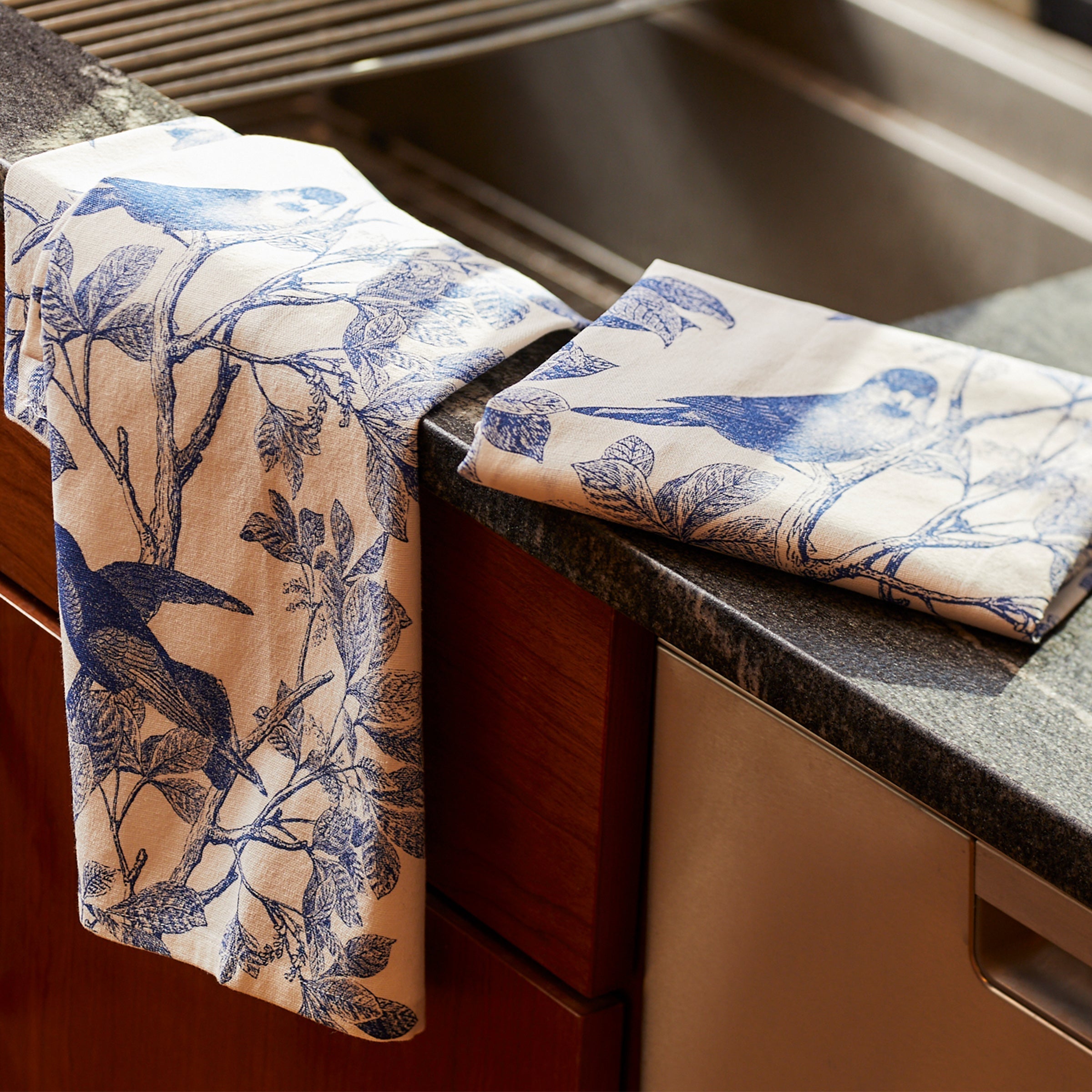 Our best-selling Arbor pattern rambles across this set of two 100% cotton everyday kitchen towels, with an aviary of birds perched amongst its branches. Pretty, yes, but strong enough to handle anything you're dishing up. You'll love how they get softer with each trip to the washing machine. Bring a sense of botanical whimsy to your kitchen with these classic linens.