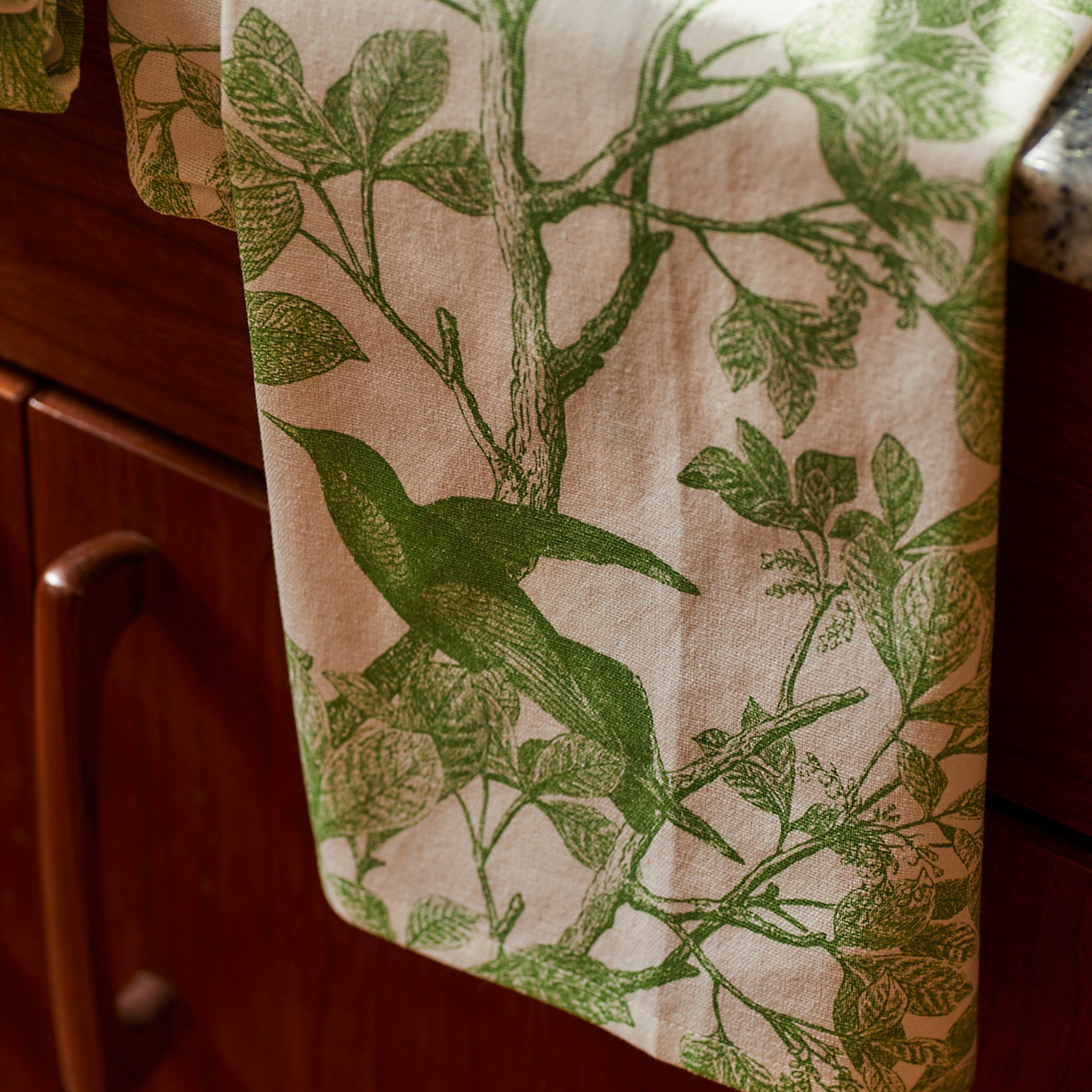 Our best-selling Arbor pattern rambles across this set of two 100% cotton everyday kitchen towels, with an aviary of birds perched amongst its branches. Pretty, yes, but strong enough to handle anything you're dishing up. You'll love how they get softer with each trip to the washing machine. Bring a sense of botanical whimsy to your kitchen with these classic linens.