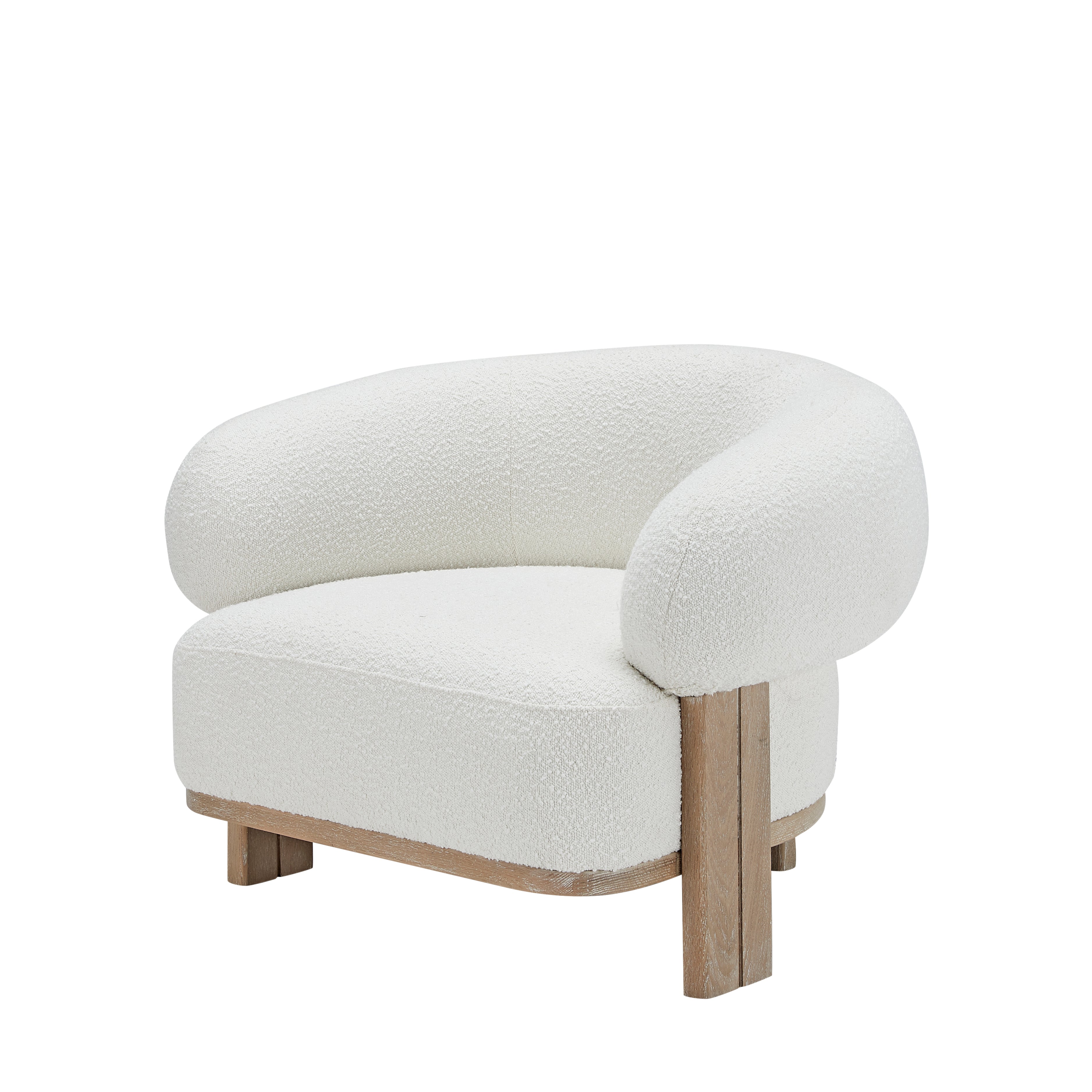 Ava Boucle Accent Chair - Solid Wood Frame Cream Neutral