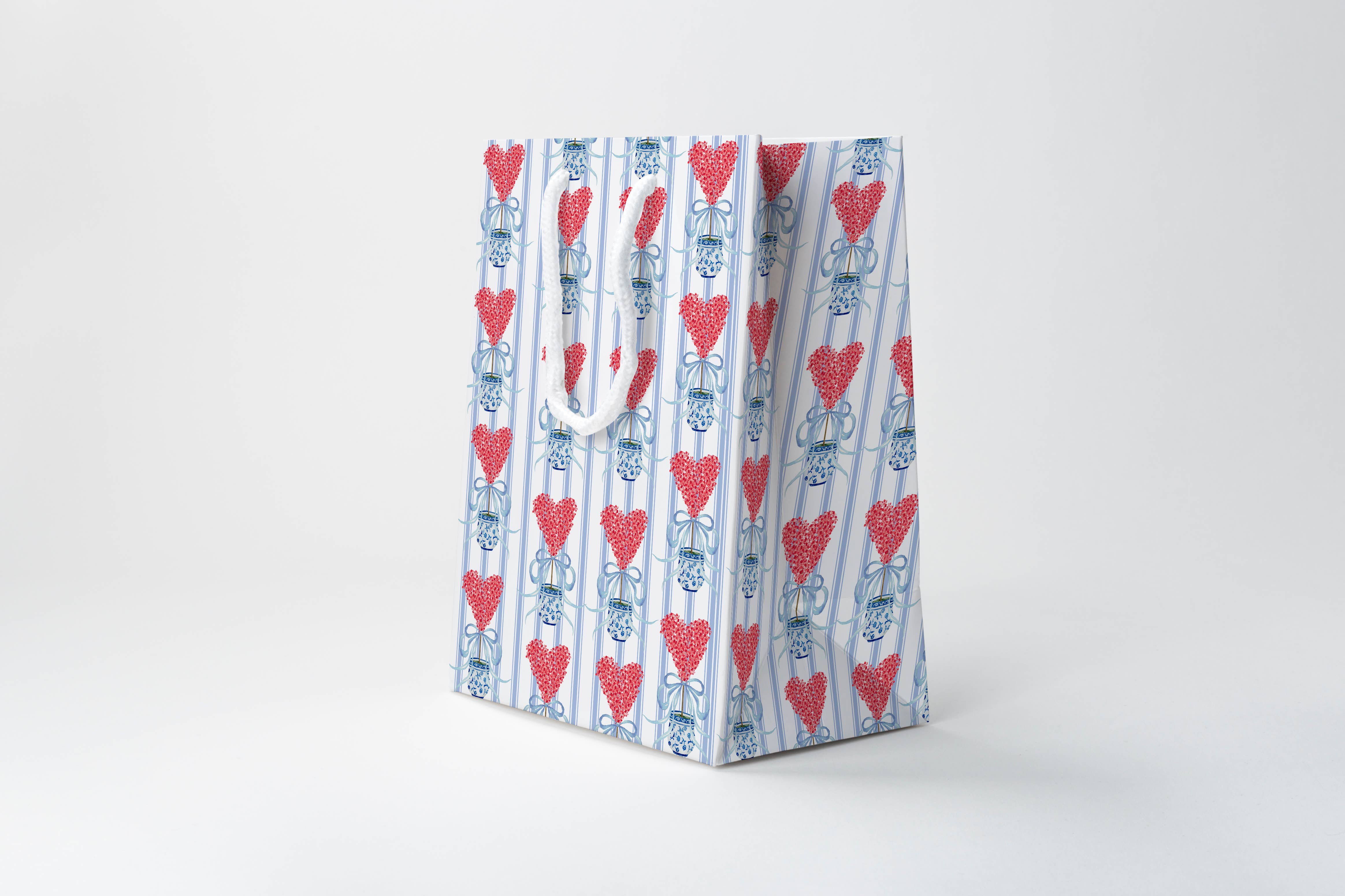 *Bags have gusseted sides, flat bottom with glued-in reinforcement card, folded upper lip, metal grommets, and premium rope handles