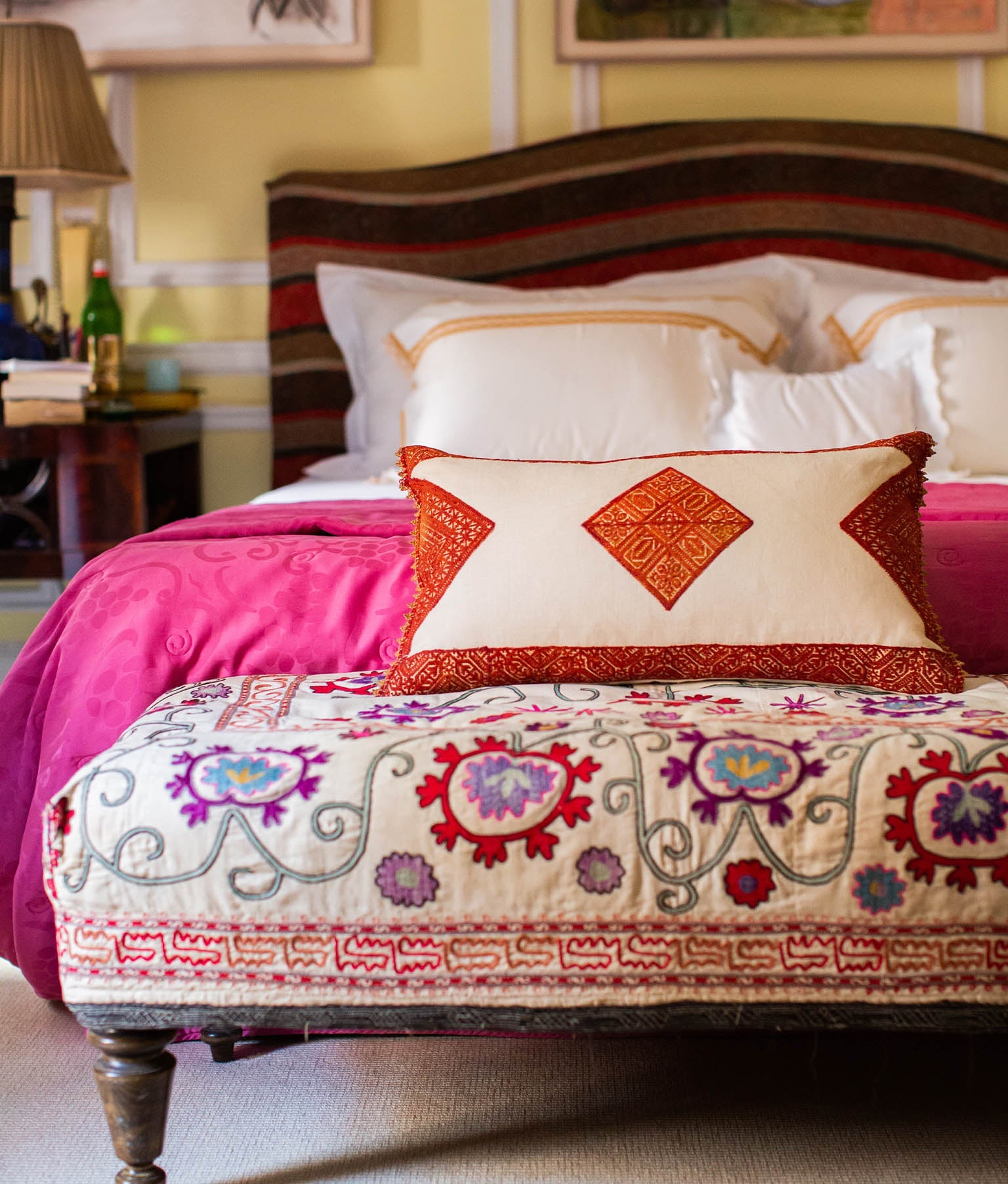 - Material: 19th Century Fez embroidery, Ivory linen