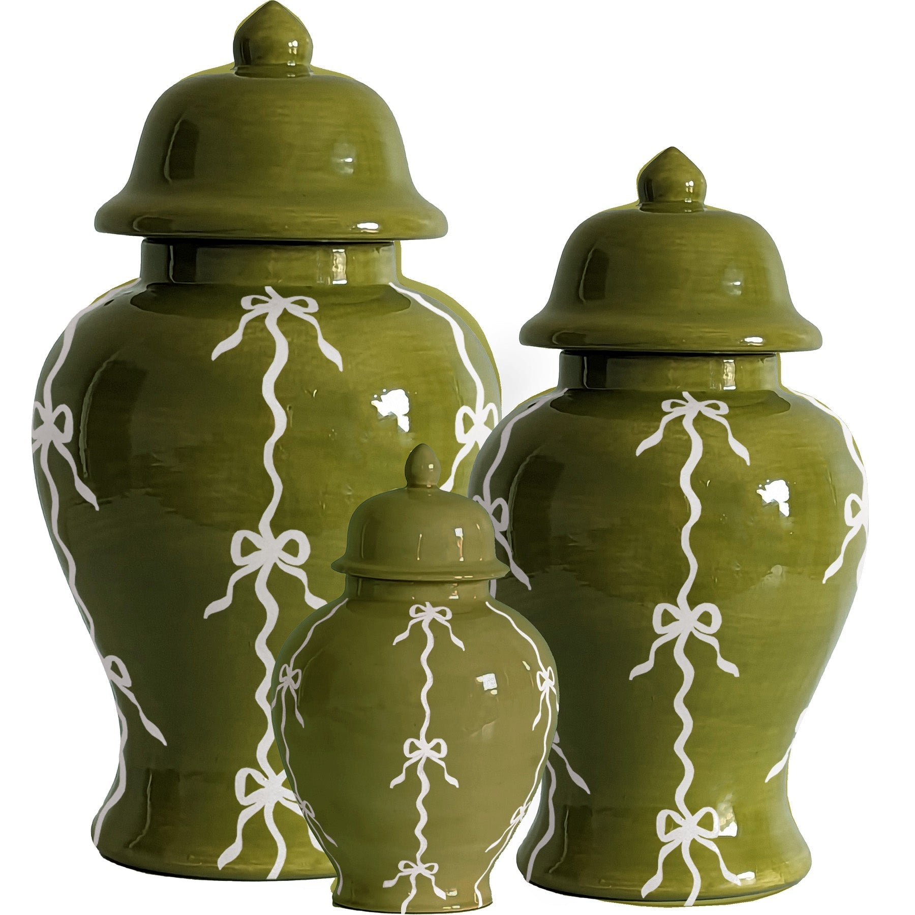 Bow Stripe Ginger Jars in Moss Green (Various Sizes)
