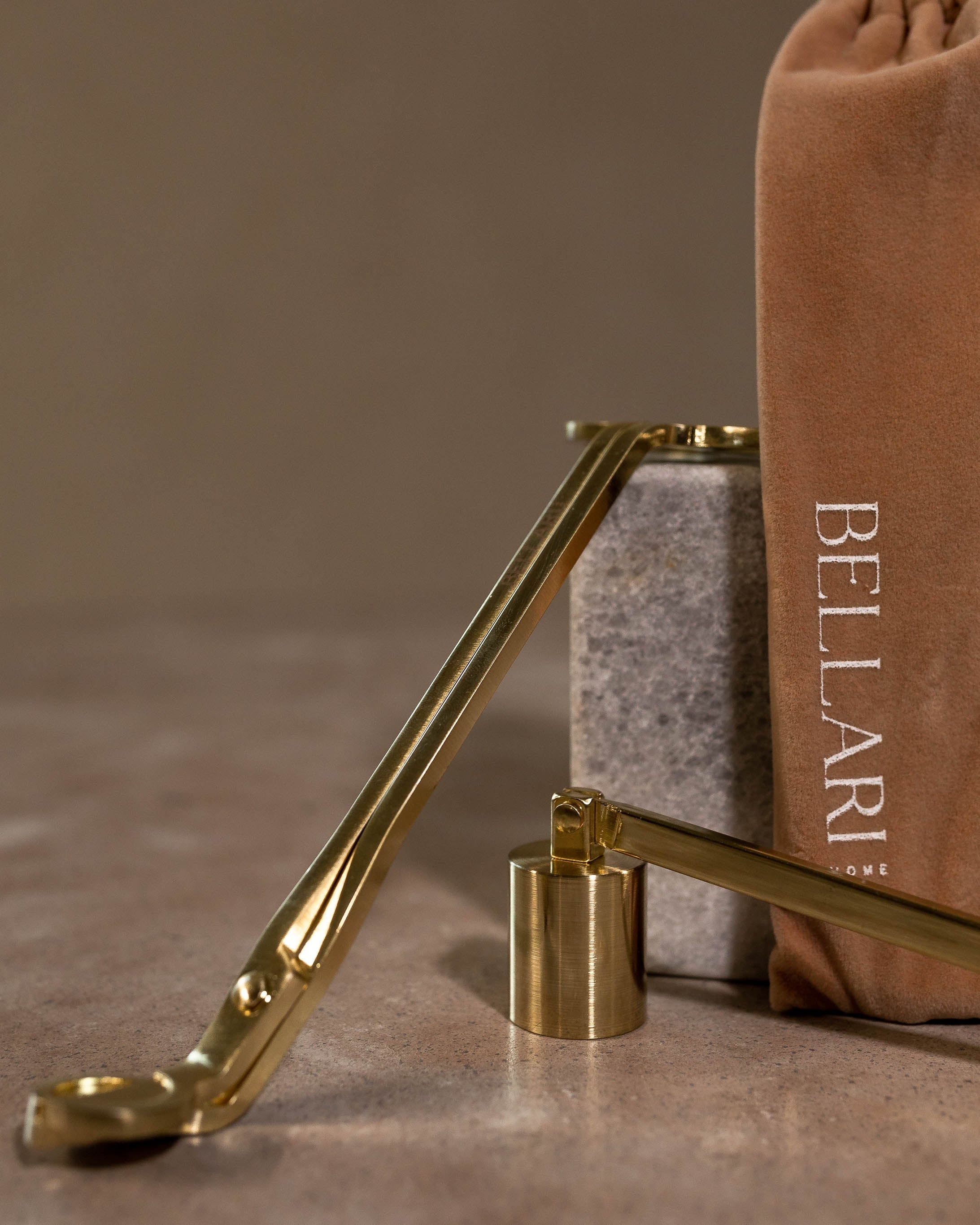 This brushed gold wick trimmer and snuffer set provides a simple and chic solution for cutting and maintaining candle wicks at safe burning lengths while safely extinguishing flames. The long handles and comfortable design allow you to easily and neatly trim your candle's wick before each burn, ensuring a clean and smoke-free burn without mess. The snuffer neatly extinguishes flames while preserving the burning quality of your candle over time.