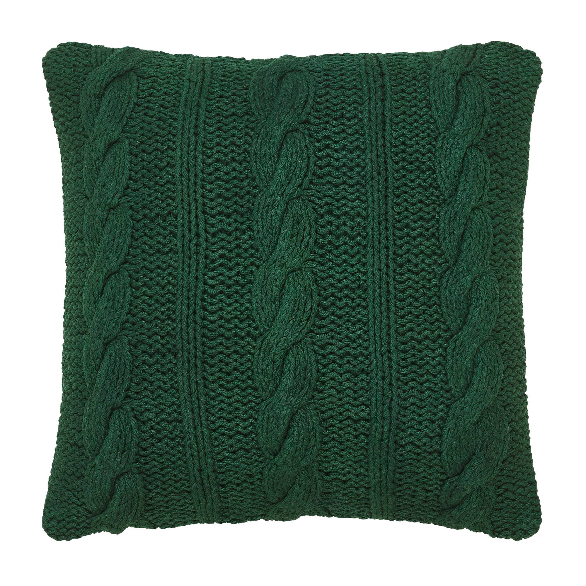 Bring the cozy charm of your favorite winter sweater into your home with this Cable Knit Sweater Pillow in rich hunter green. Crafted in an 18" x 18" square silhouette from soft cotton, it features a classic cable knit pattern that adds texture, warmth, and timeless style. A perfect seasonal accent for sofas, armchairs, and beds — or a year-round staple for rustic, lodge, or traditional interiors.