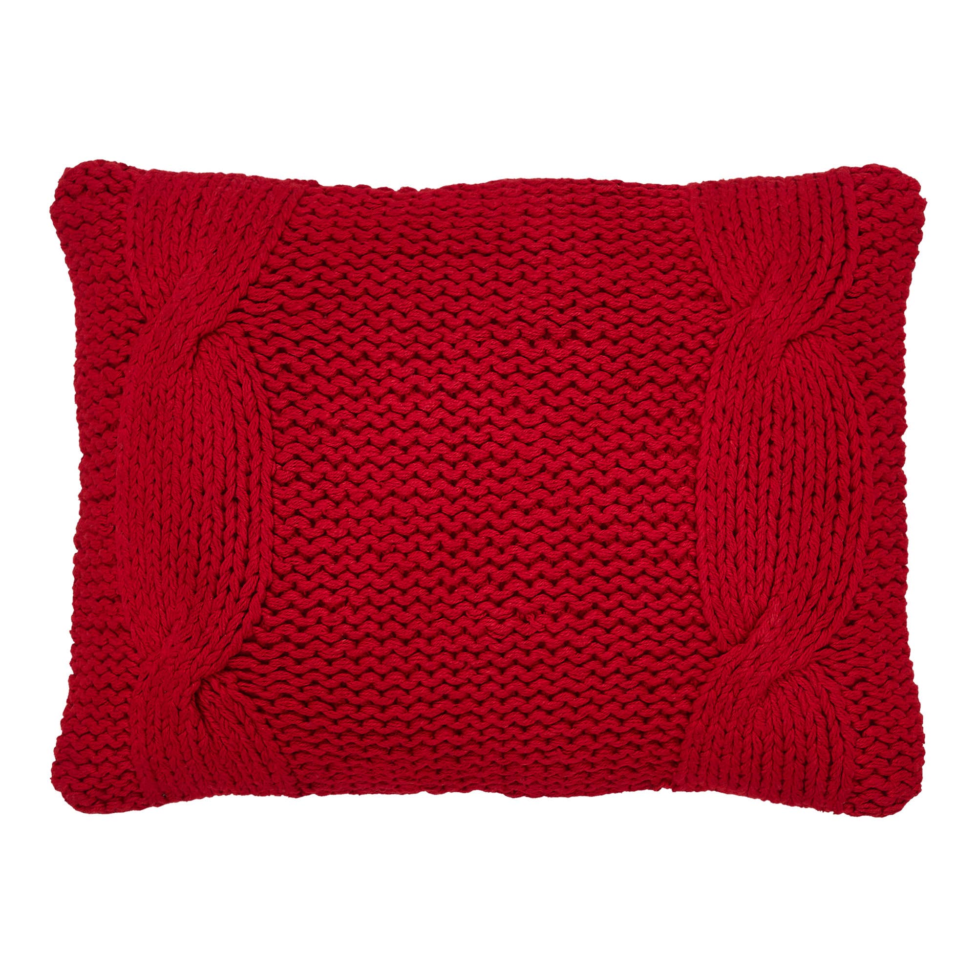 Bring cozy comfort and classic holiday charm into your home with this Cable Knit Sweater Pillow. Designed in a bright, festive red, it features a traditional cable knit pattern reminiscent of a favorite winter sweater. The warm texture and seasonal hue make it the perfect accent for Christmas decorating or winter layering. Crafted from soft cotton with a plush polyester fill, this 12" x 16" lumbar pillow blends rustic, primitive, and farmhouse influences for a timeless, inviting look.