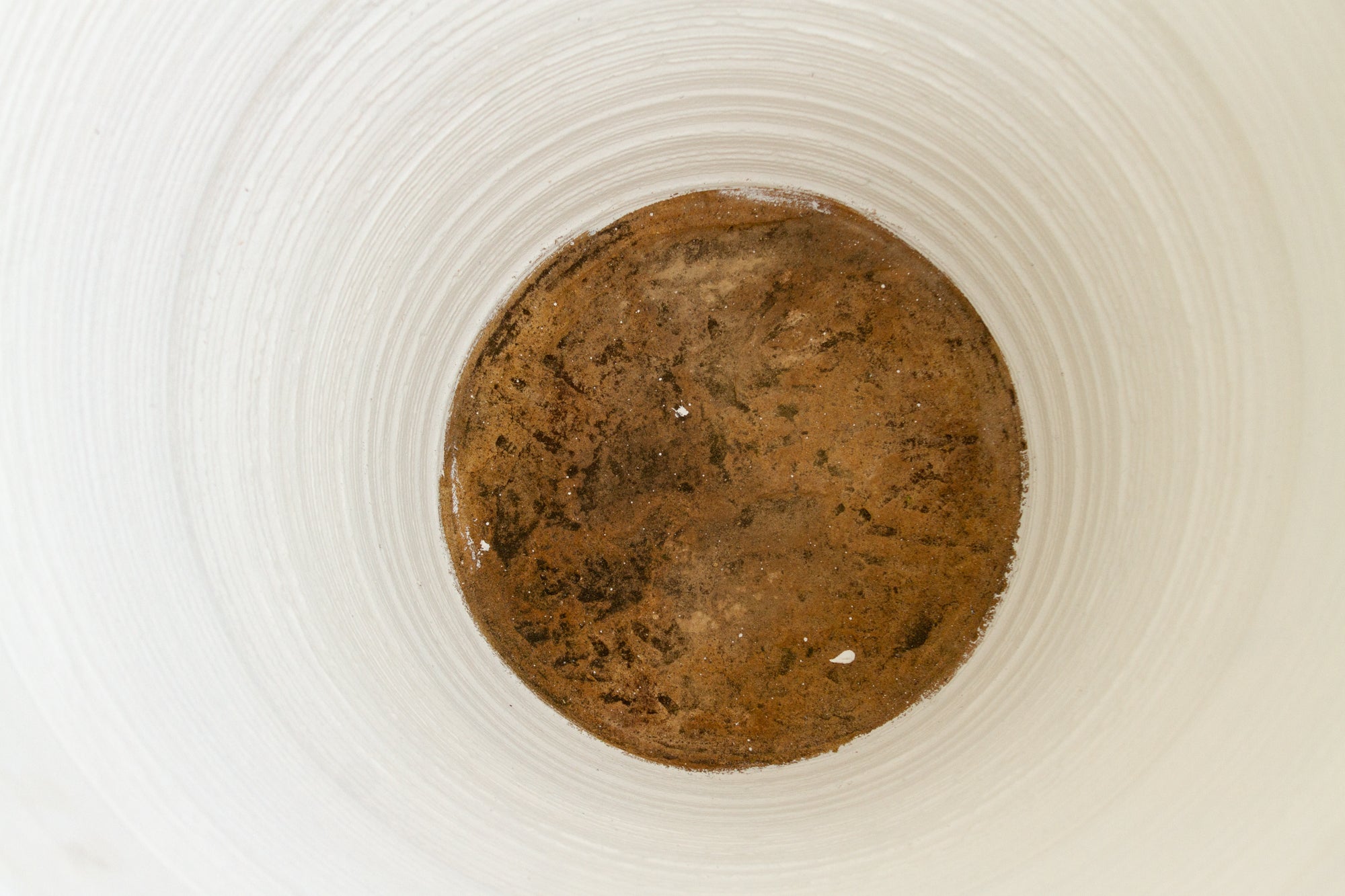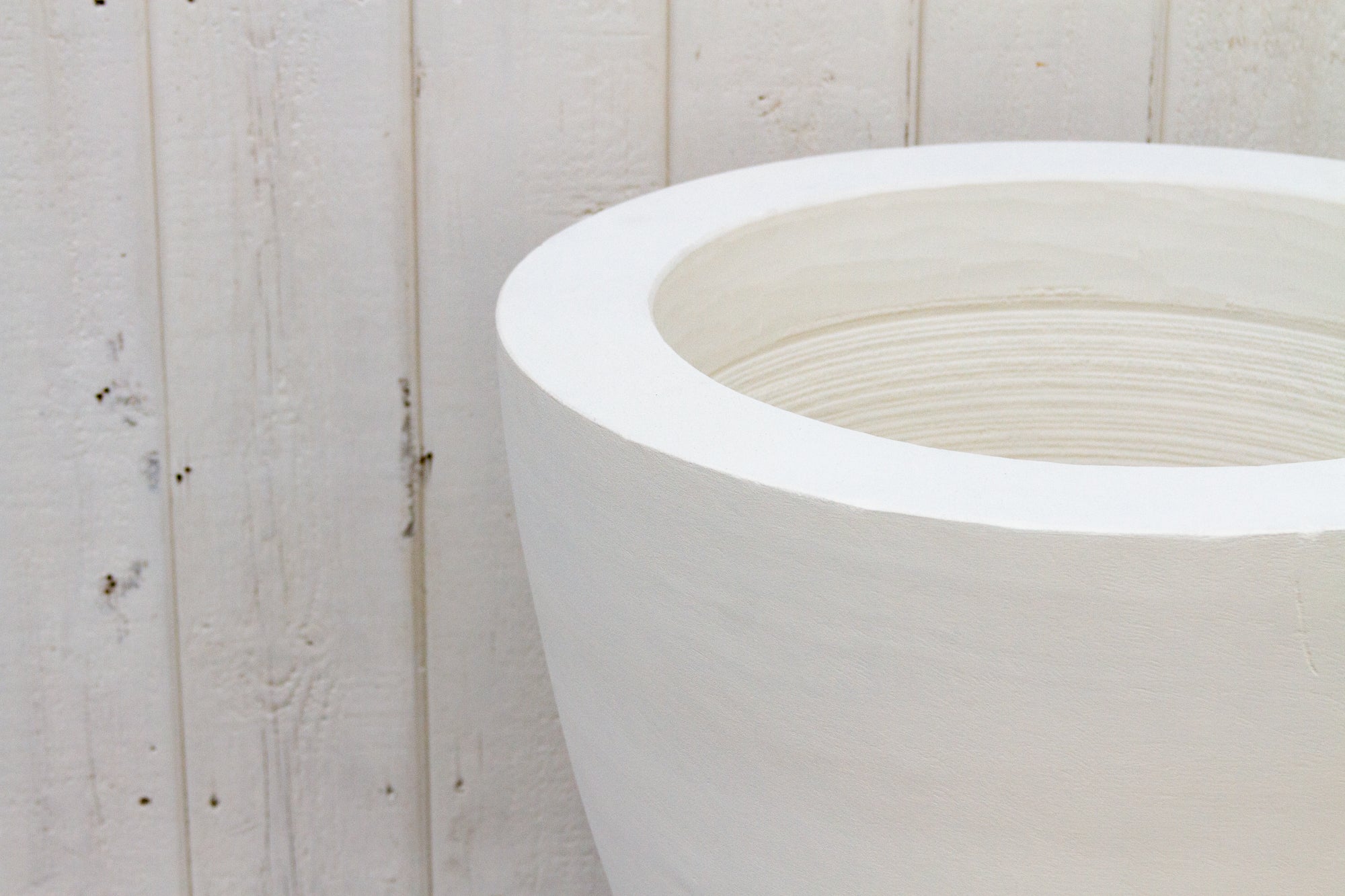 A garden planter handcrafted from Karoli sandstone. This planter features an elegant and smooth rounded shape. The simple design blends with any other outdoor/indoor decor. This planter does not have a drainage hole at the bottom of its base.