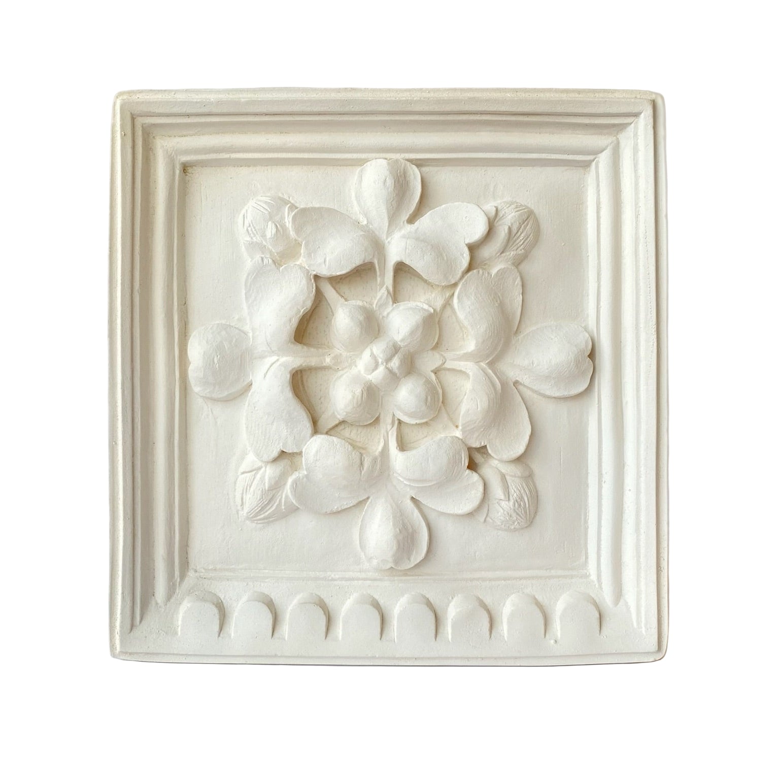 The designs: nuts, ivy, globe, five leaves, clover and berries have been redefined to fit into wonderful, geometric round and square shapes and further, surrounded by architectural molding.