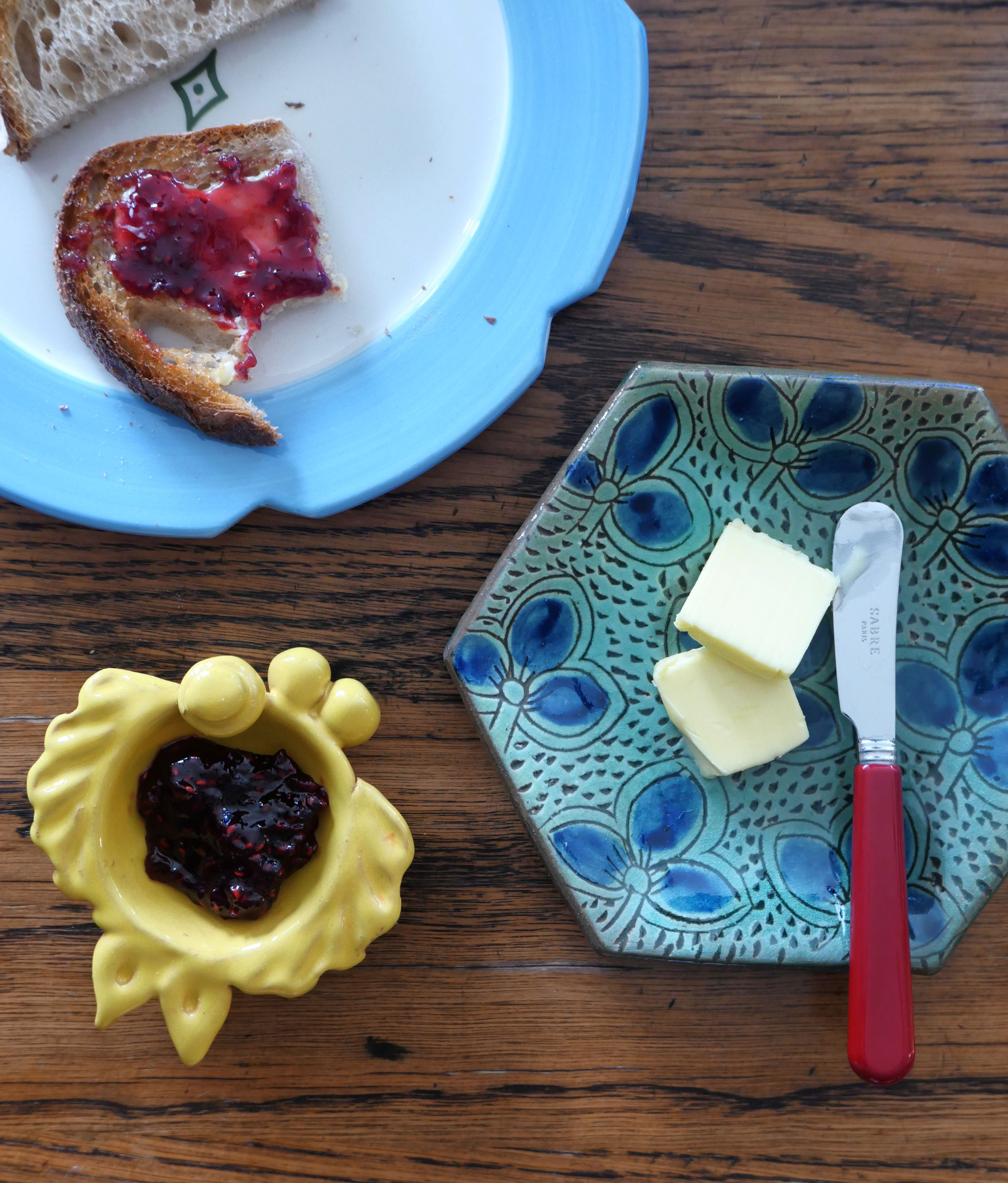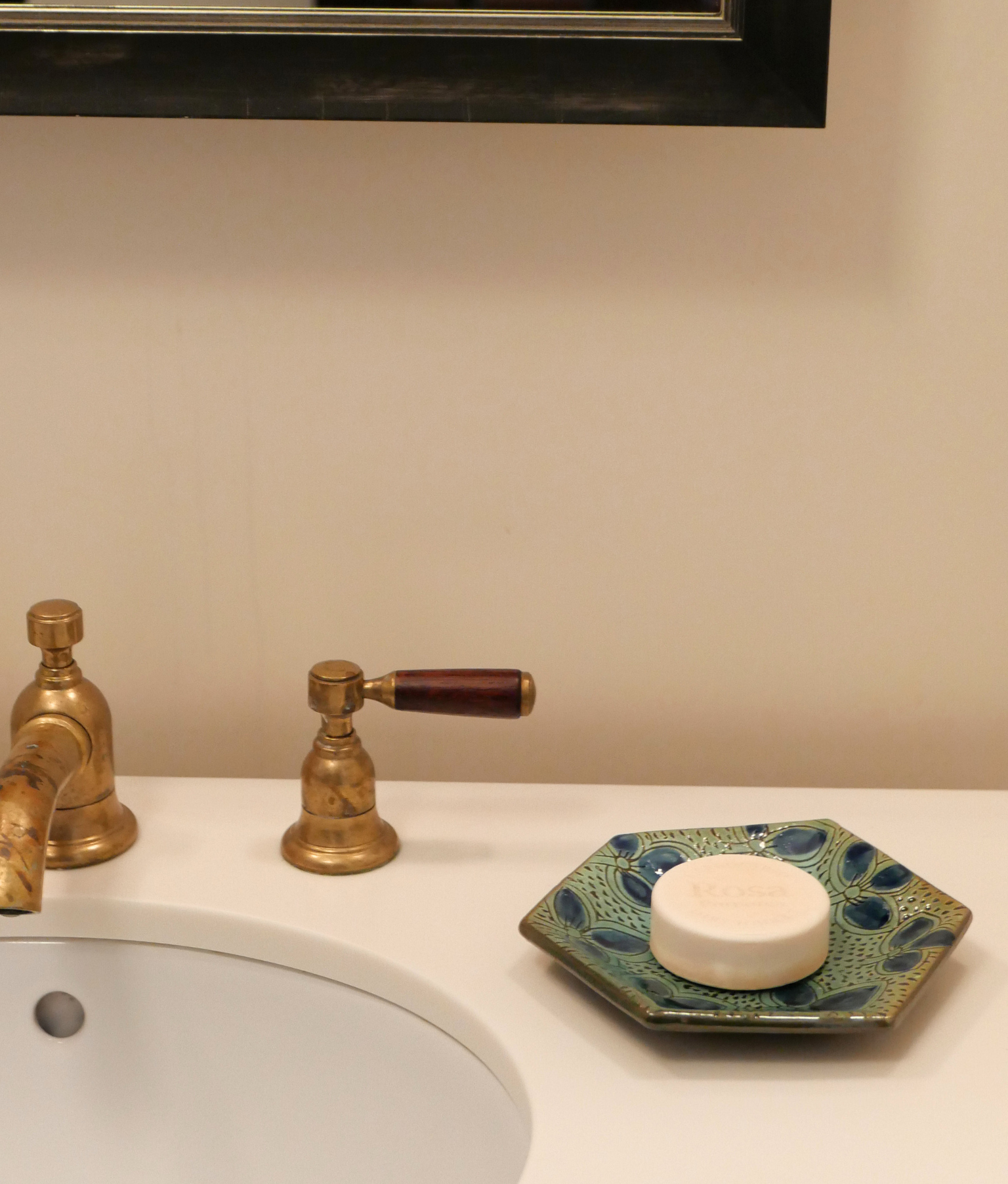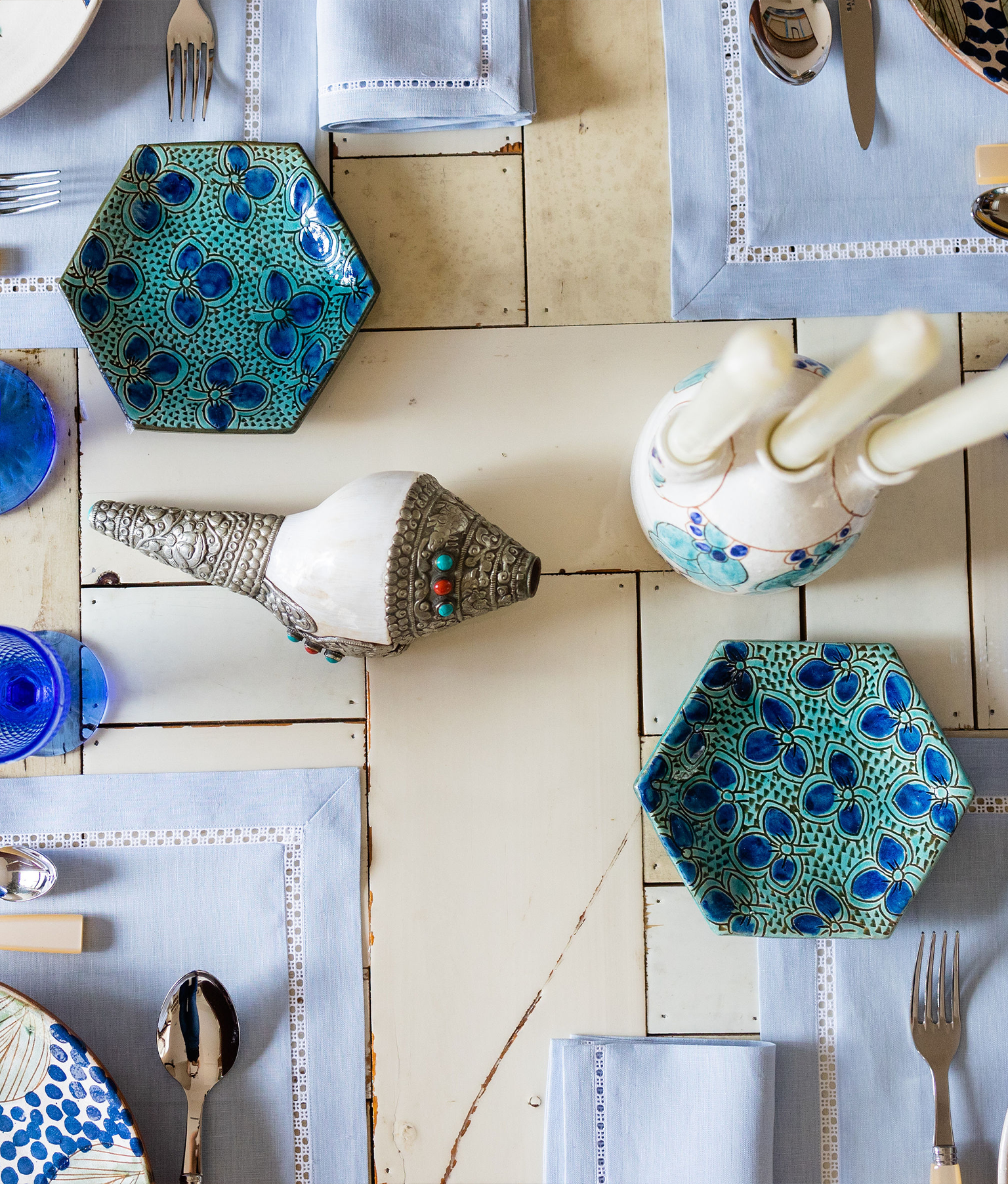 The Clover Hexagon bread plate is handmade out of clay by artisans in a small town called Fayoum. It is the ultimate addition to any dinner table and features a beautiful hand-painted design.
