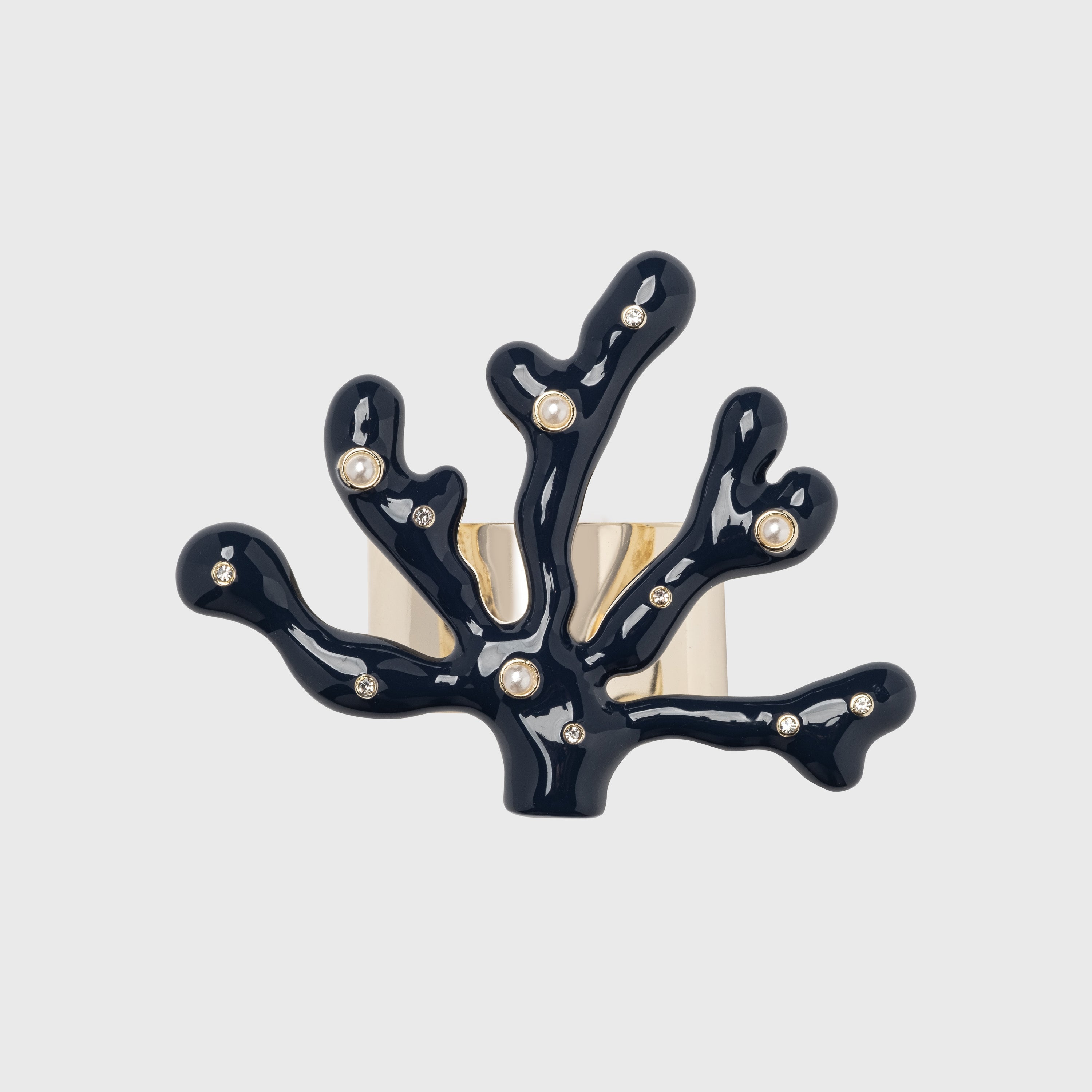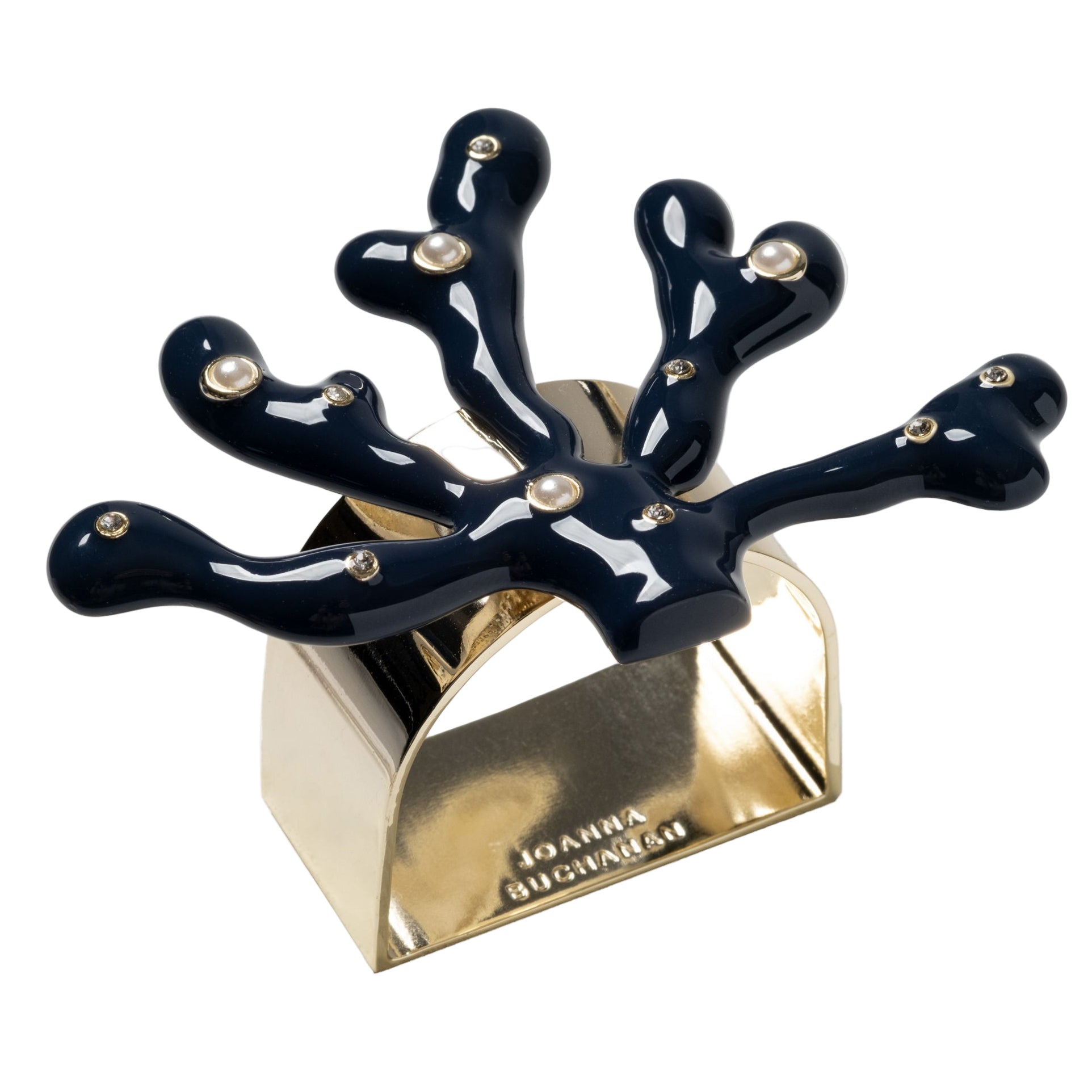 Coral napkin rings, navy, set of four Navy could not be more chic.... and navy coral?? The ultimate!!! On our flat-backed new luxe napkin ring, (no rolling at sea!) these navy coral-shaped napkin rings are perfect to enhance any navy and white tablescape you have planned. With glossy enamel and hand-set stones, they bring just the right amount of polish to your table.