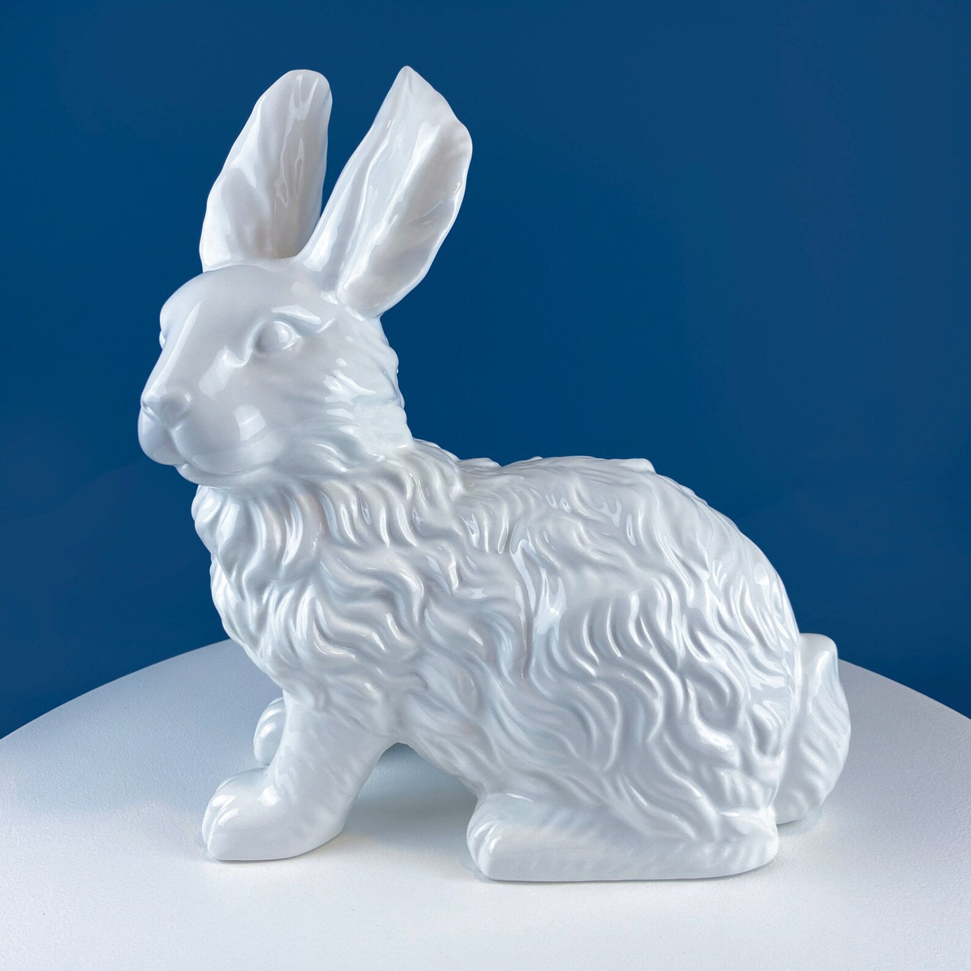 Cute Porcelain Gray Bunny with Pink Ears. Rabbit Figurine for Kids Room, Easter or Spring Celebration. Dining Room Display. Collectible Statuette.