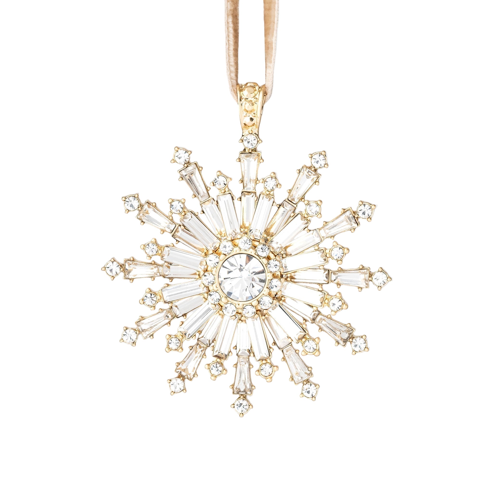 It's hard to describe just HOW sparkly this snowflake ornament is... we use only glass stones and all their cut facets catching the light make this treasure just out of this world! Create a dazzling winter wonderland on your tree!