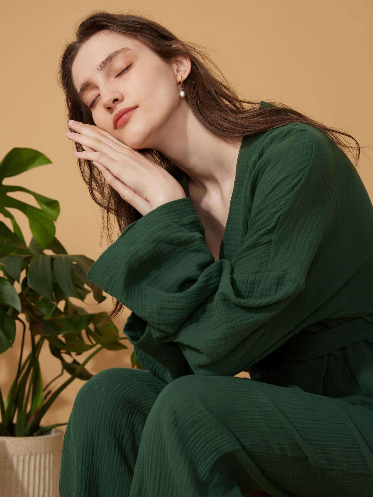Elevate your daily comfort and style with Ulivary's Double Gauze Cotton Robe and Pants Pajama Set.