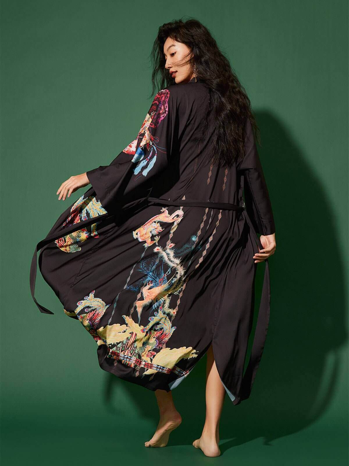The Dragon Phoenix Kimono Robe is designed for those who appreciate the finer things, allowing you to feel elegant and empowered, no matter the occasion. With its exquisite craftsmanship and timeless appeal, it makes a thoughtful and memorable present for a loved one.