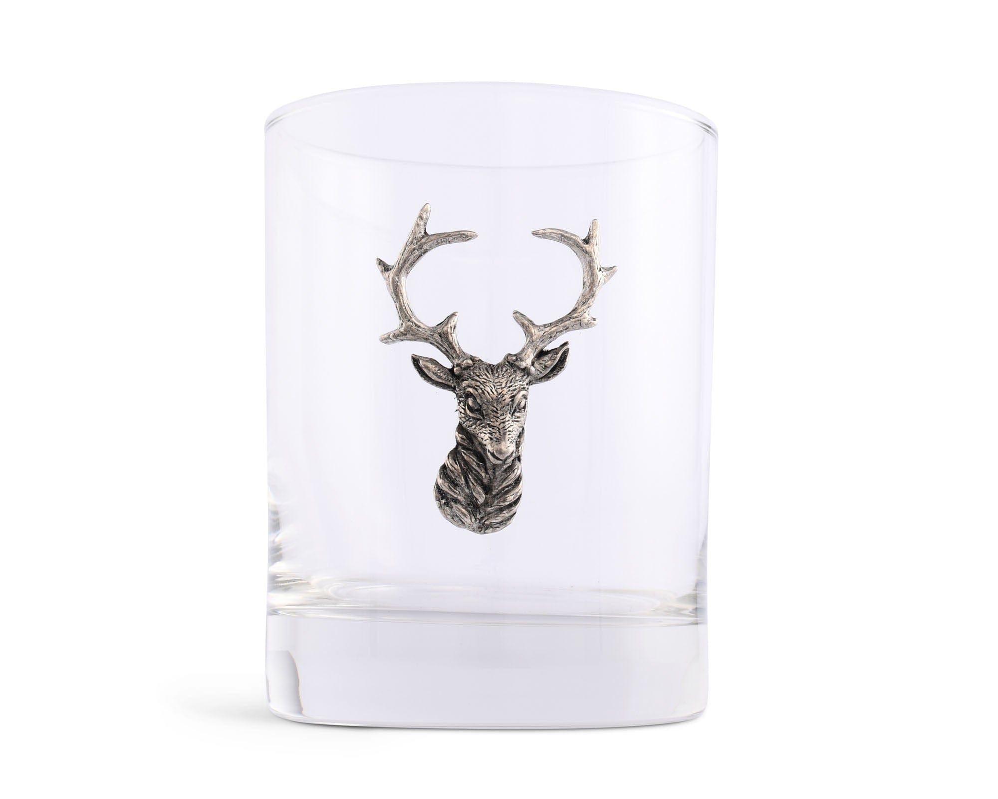 Immerse in wilderness charm with Vagabond House's Elk Head Double Old Fashioned Glass. This ideal addition for high-end dinner parties features a realistic pewter elk head, bringing an edge of rustic luxury to your barware essentials. Meticulously crafted to exude a sense of sophistication, the generously sized 8oz glass not only showcases crystal clear perfection but also a detailed insignia that sings praises of excellent craftsmanship. Perfect for birthday surprises for outdoor enthusiasts or rustic themed cocktail parties.