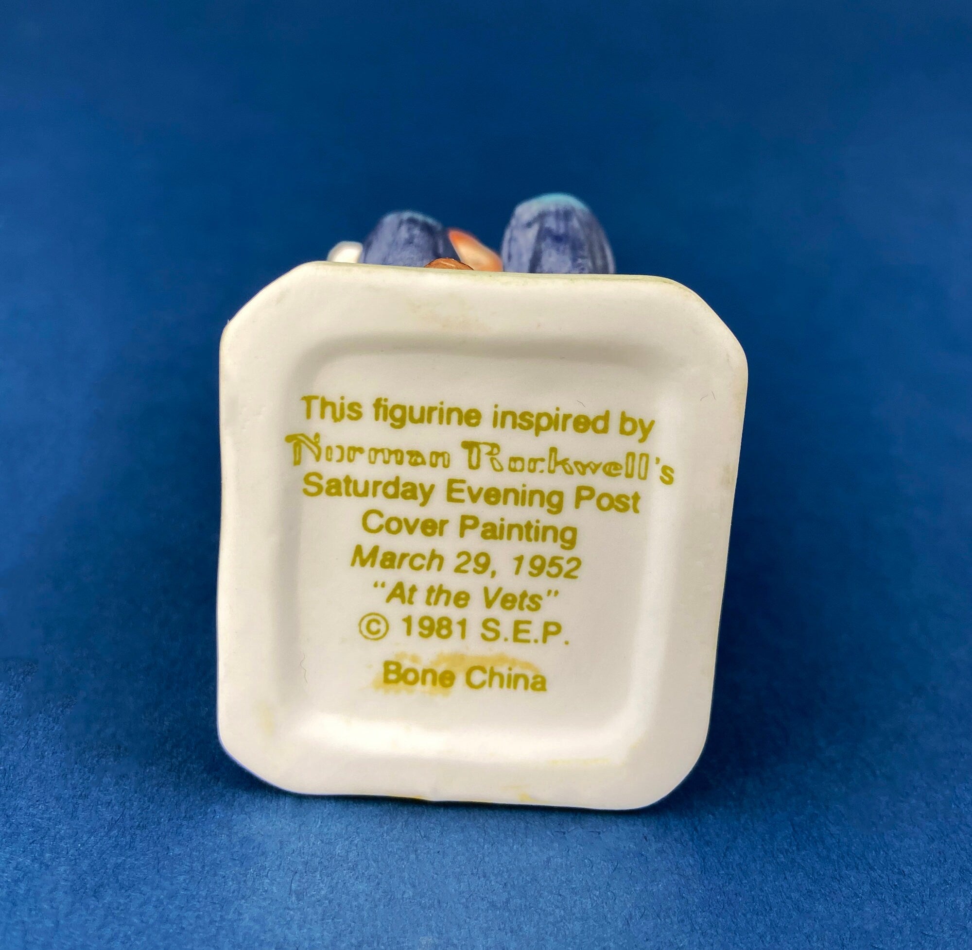 Get Well Soon Porcelain Figurine of Boy Holding Sick Dog. Inspired by Norman Rockwell's Saturday Evening Post Cover: "At the Vets," from 1952. Gift for Veterinarians, Dog Lovers. Very Good Condition.