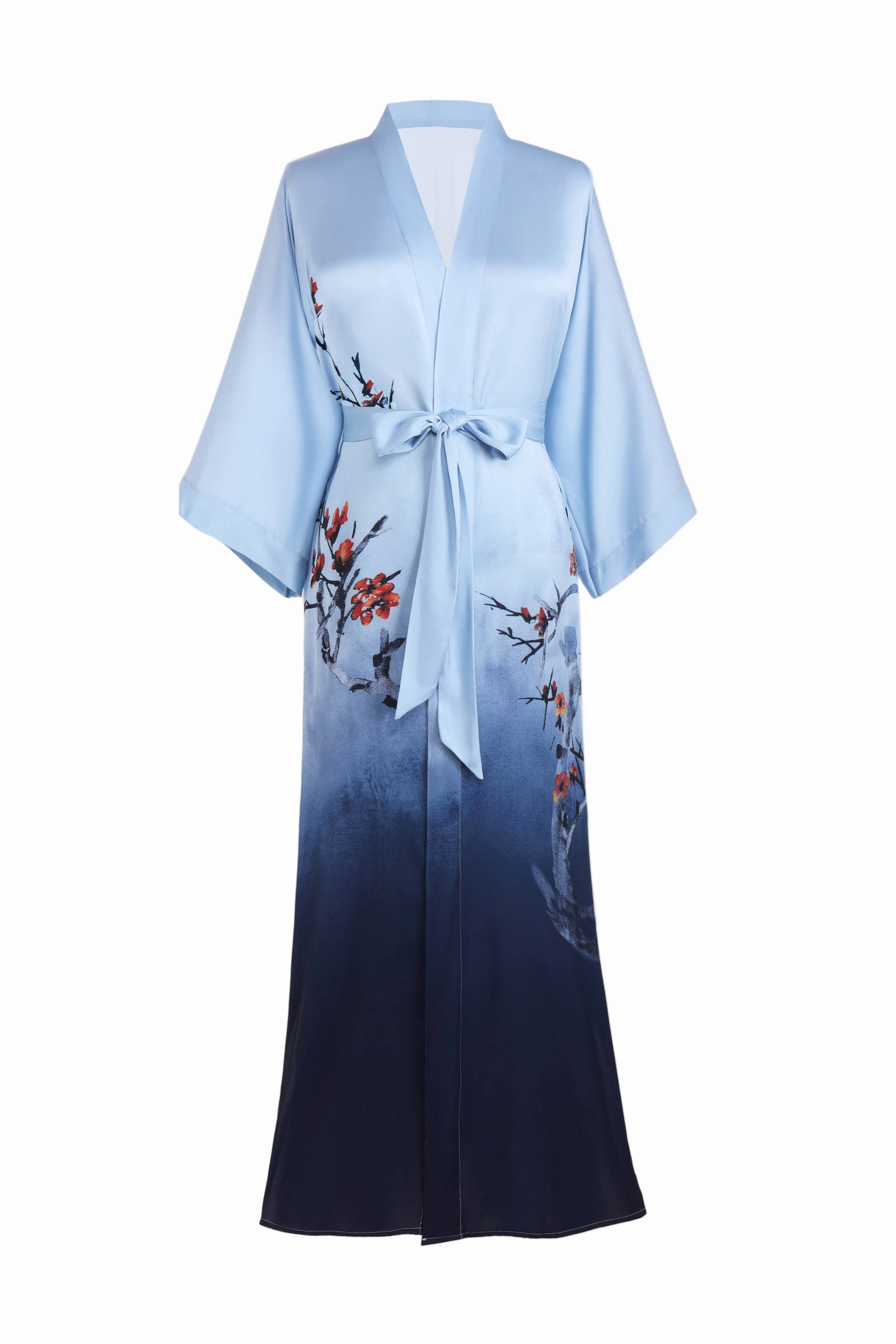 Light up every moment with this silky satin kimono robe, designed with a flowing silhouette and a dreamy gradient watercolor floral print. Soft, elegant, and beautifully draped, it brings effortless charm to both everyday lounging and special occasions.