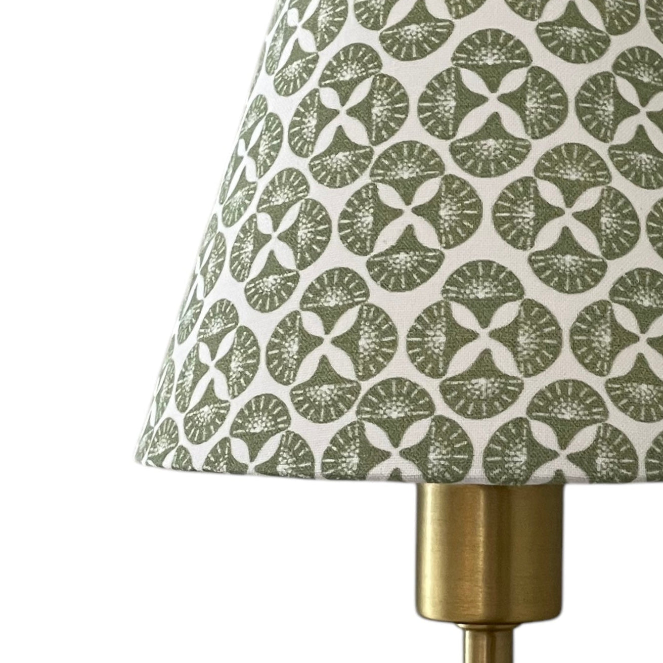 Liven up your lighting with our handcrafted sconce shade, featuring this coastal-inspired green and white, sea star design. This charming pattern is our original design featuring a soft green hand-stamped print. The lampshade easily clips onto chandeliers and wall sconces.