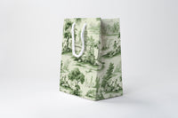 *Each bag is 9.6"L x 4.5"W (gusset) x 13"D *Our bags are printed on heavyweight scuff-resistant stock paper. *Bags have gusseted sides, flat bottoms with glued-in reinforcement card, folded upper lip, metal grommets, and premium rope handles