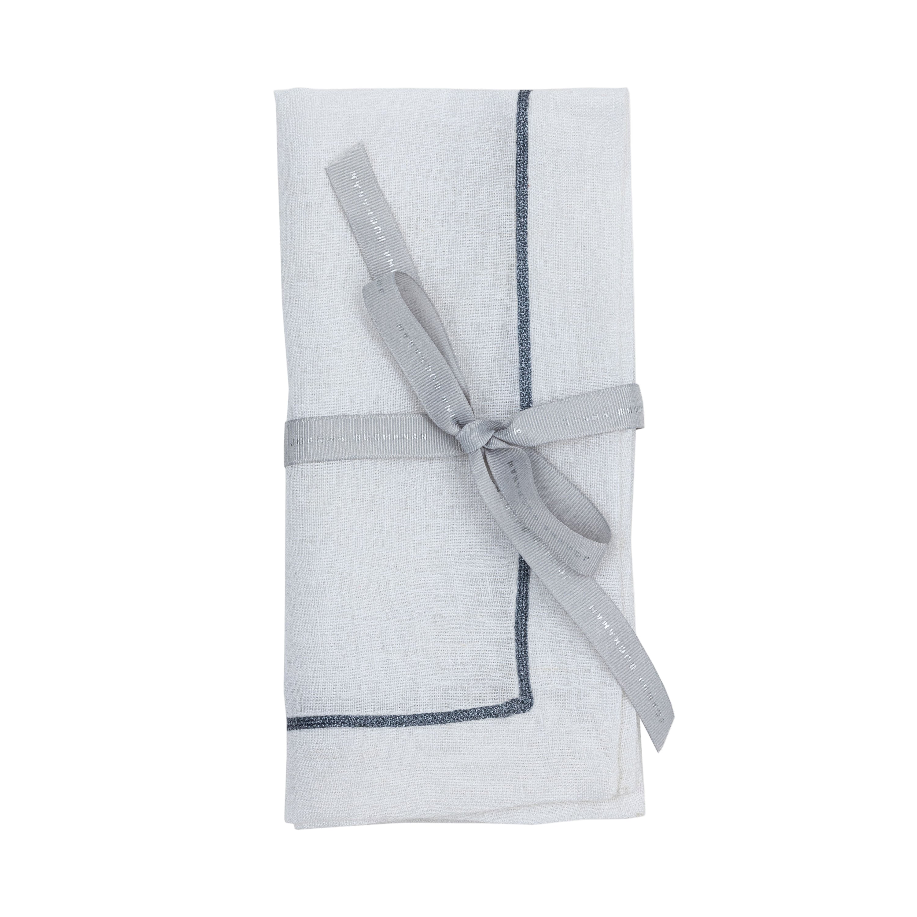 Gunmetal Trim Linen Dinner Napkins – White (Set of 2)