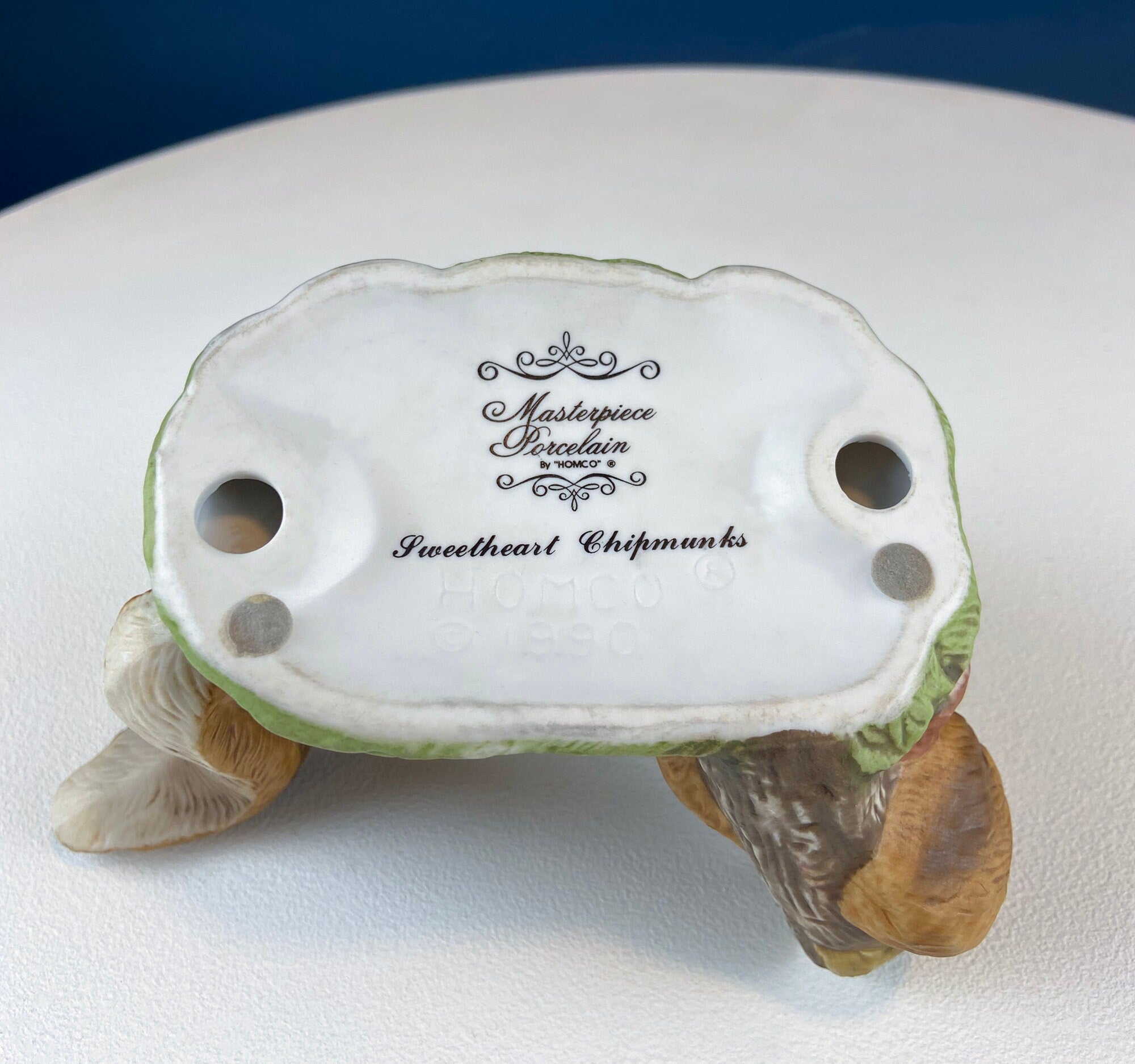 Hand-Painted Sweetheart Chipmunks. Masterpiece Porcelain by HOMCO. Fall Home & Retail Decoration. Modern Farmhouse. Table Centerpiece. Marked by the manufacturer. Great gift Idea.