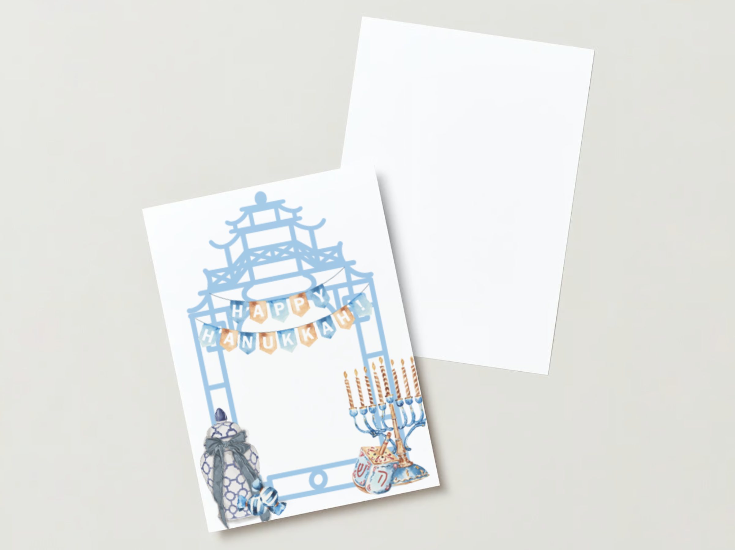 Beautiful Hanukkah card with Chinoiserie touches.