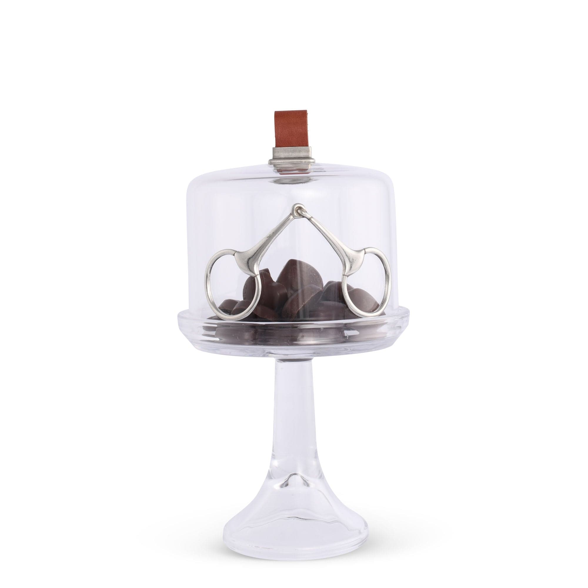 Be the talk of your next event with the elegant, hand-blown glass Horse Bit dessert stand from Vagabond House. Yielding both style and functionality, its unique equestrian design makes it a standout piece in any setting. With its handcrafted solid pewter and artful horse bit decor, it's more than just a stand—it's a statement. It's generous size provides ample space for showcasing your culinary creations, while its luxurious look makes it the perfect centerpiece for weddings, housewarmings or baby showers. This equestrian collection item is not only a dessert stand but also a luxurious handcrafted equestrian present for horse enthusiasts.
