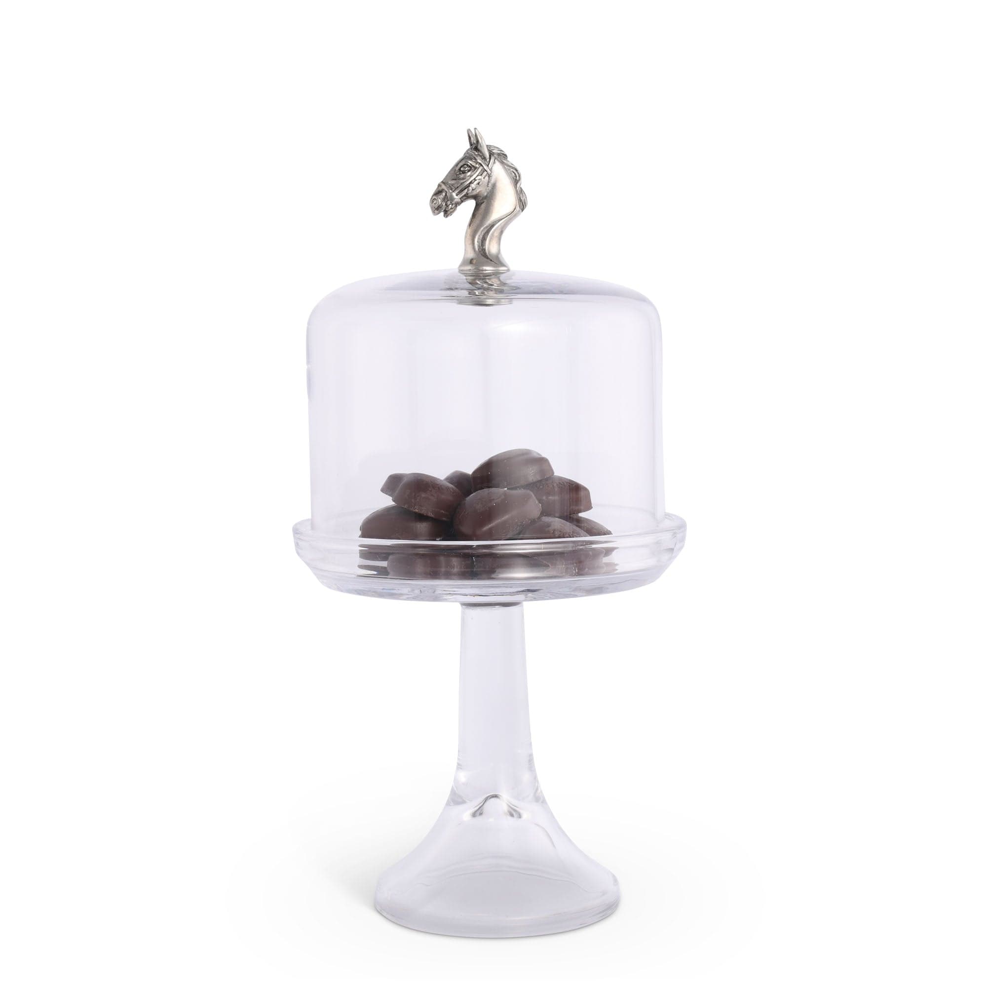 Be the talk of the town with Vagabond House's best designer glass cheese stand with horse design for weddings. The elegance of glass and the strength of pewter come together in this high-end, one-of-a-kind piece that's perfect as a high quality horse head glass stand gift for baby showers. With its artistically handcrafted horse head knob, it gives an upscale look to your parties and draws admiring gazes towards your delicious creations.