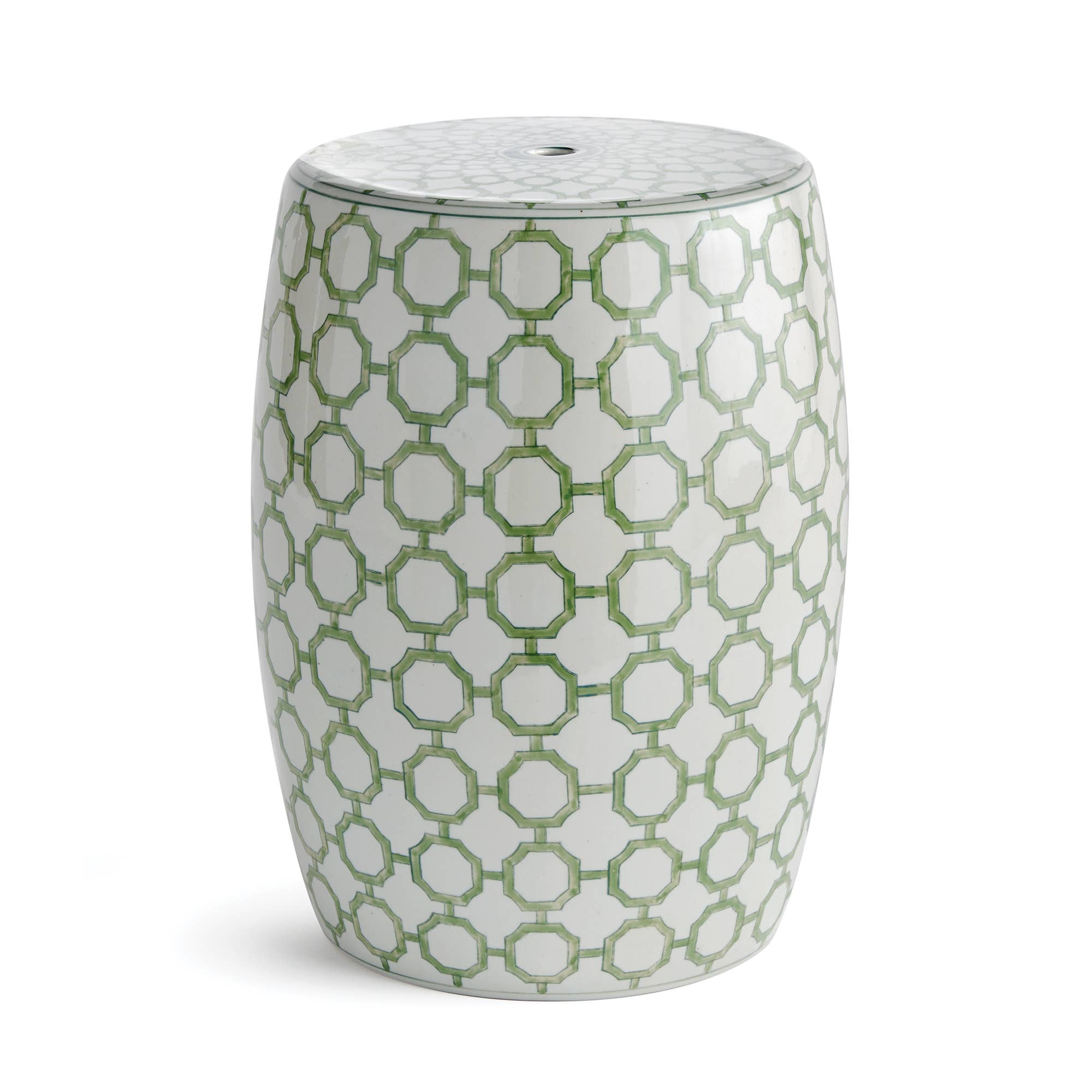 A fresh take on timeless tradition, the Imperial Link Stool features a classic chinoiserie design in soothing shades of green and white. Hand-painted with intricate detail, this traditional garden stool adds a sense of harmony, balance, and calm to any space. Whether styled as a side table, pedestal, or decorative accent, it brings both beauty and function to well-appointed interiors.
