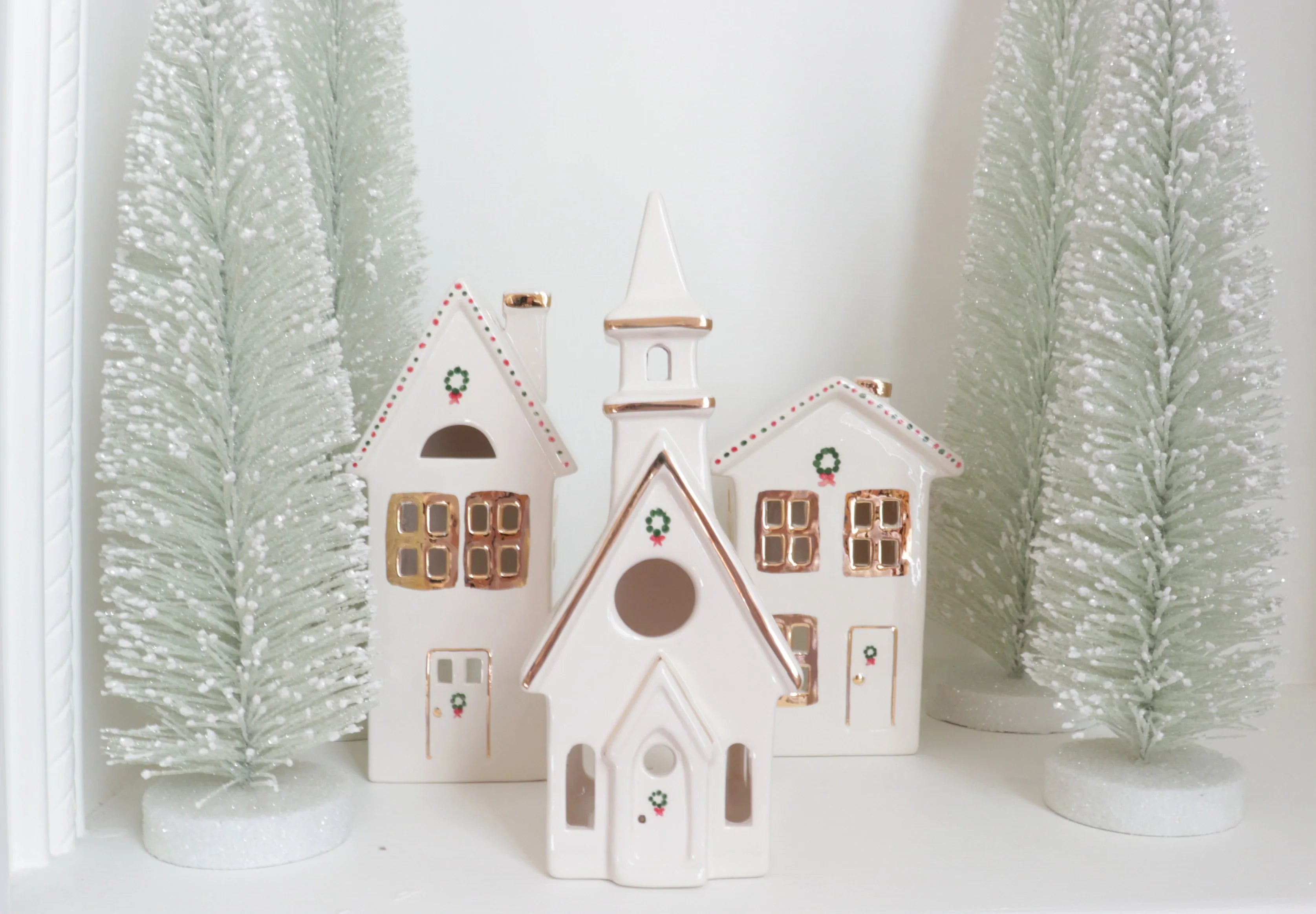 Ivory Christmas Village 3-Piece Set with 22K Gold Accents