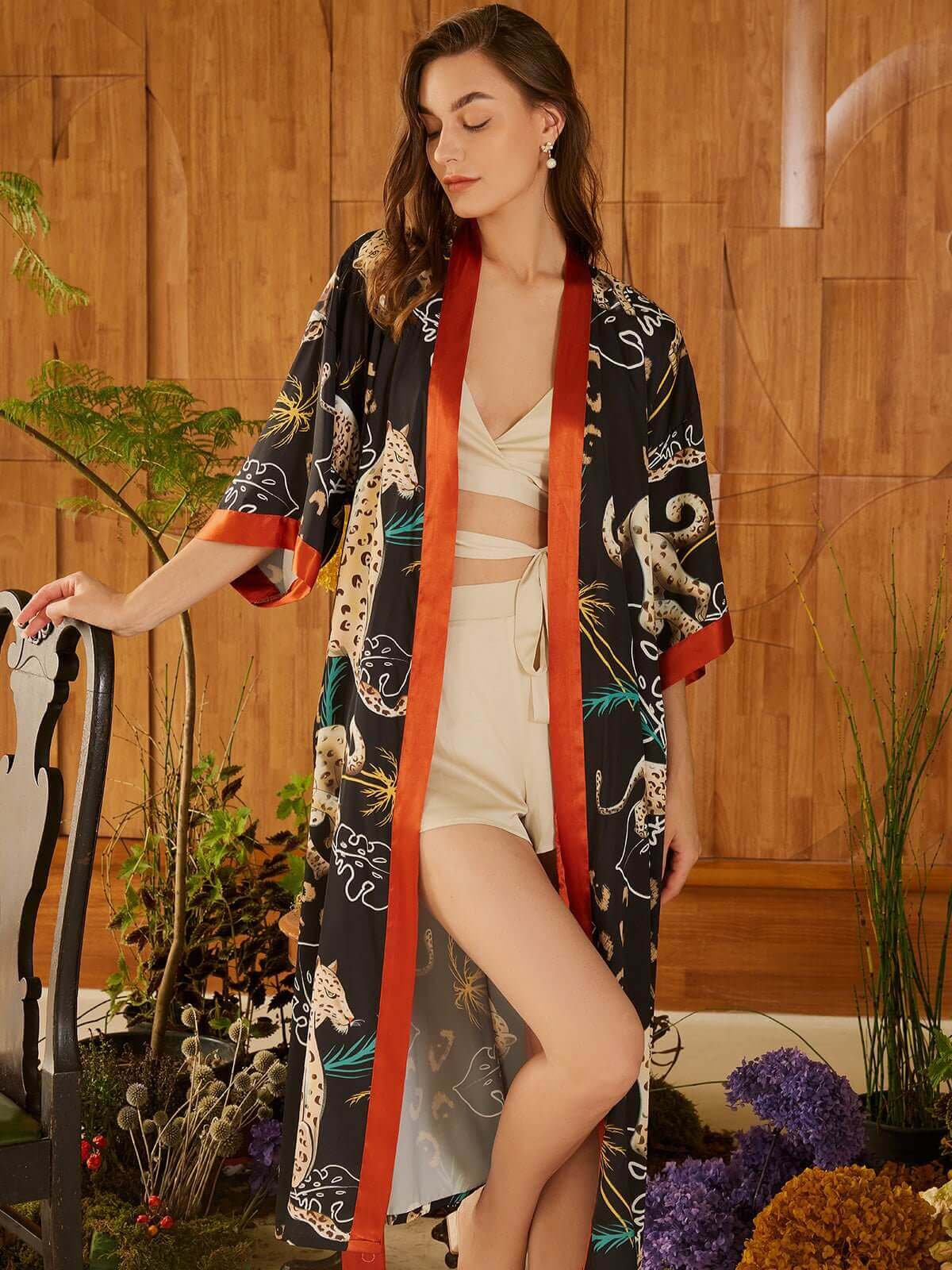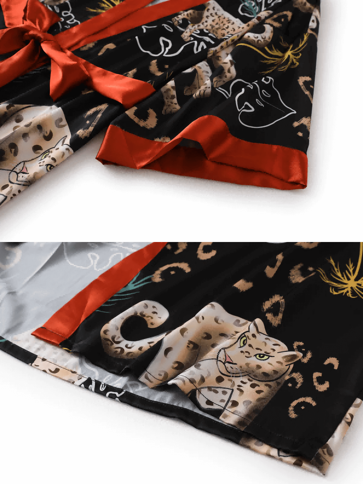 Wrap yourself in the luxurious feel of our ultra-soft, high-quality fabric, adorned with hand-painted jungle animals prints. Designed to care for your skin morning and night, our robe kisses away wrinkles, ensuring joy for every occasion. Experience unmatched comfort and elegance, making each moment a celebration of beauty.