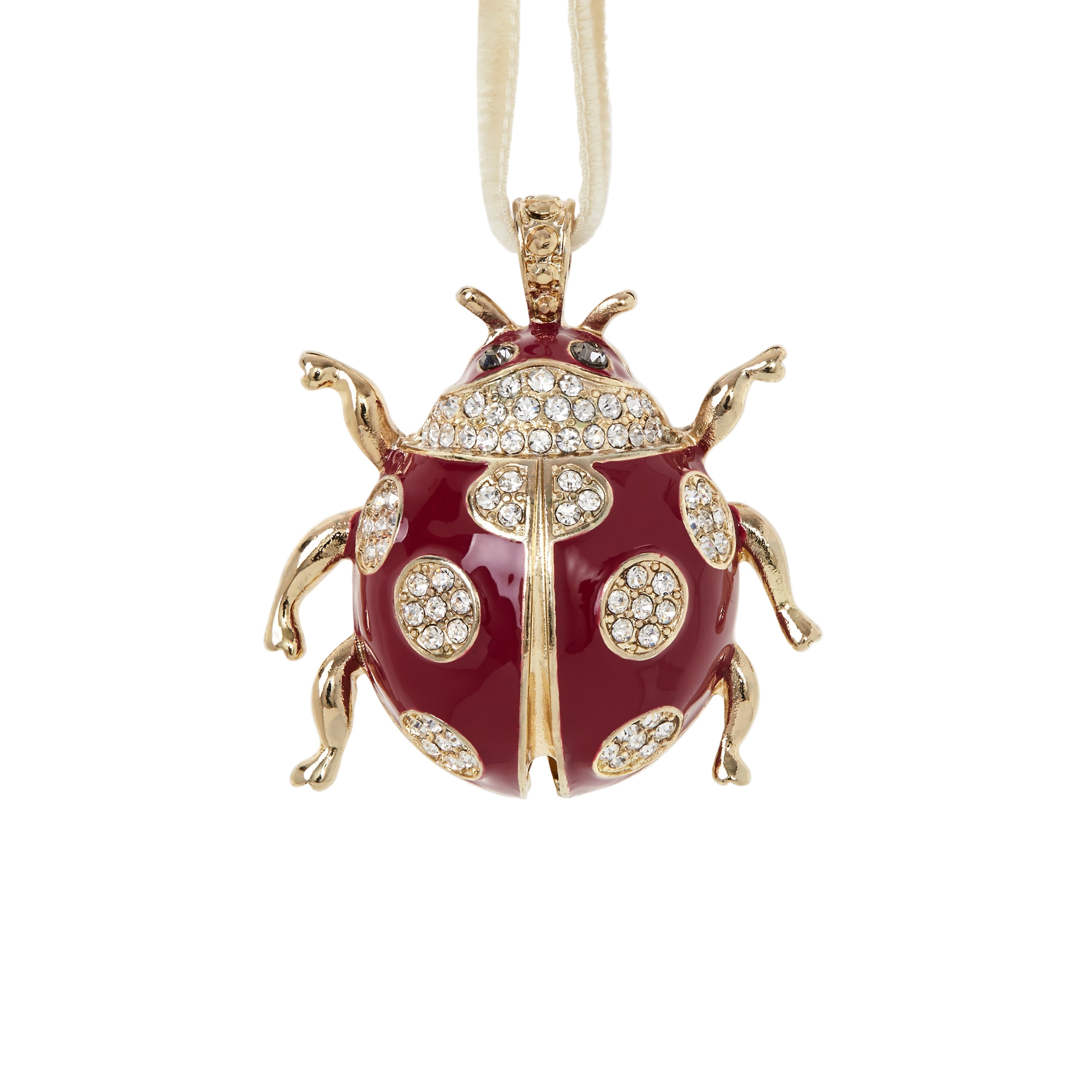 It doesn't get more graphic than this! A striking new bug in our mix..... red and gold and sparkle all over! This hanging ladybug ornament will bring luck to every Christmas tree! You may not want to put it away at the end of the Holidays!