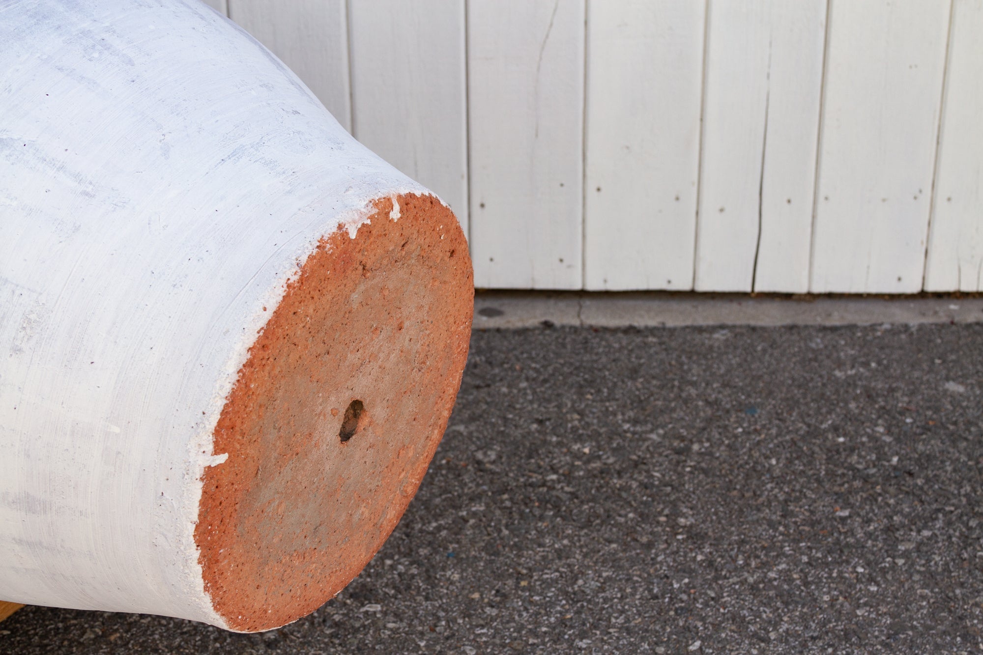 A grand and robust terracotta planter with wide top opening, amphora shape and un-glazed whitewash surface. Ready to be filled with gorgeous plants, this piece is perfect to add touch of nature to any home. This planter has a drainage hole at the bottom of its base.