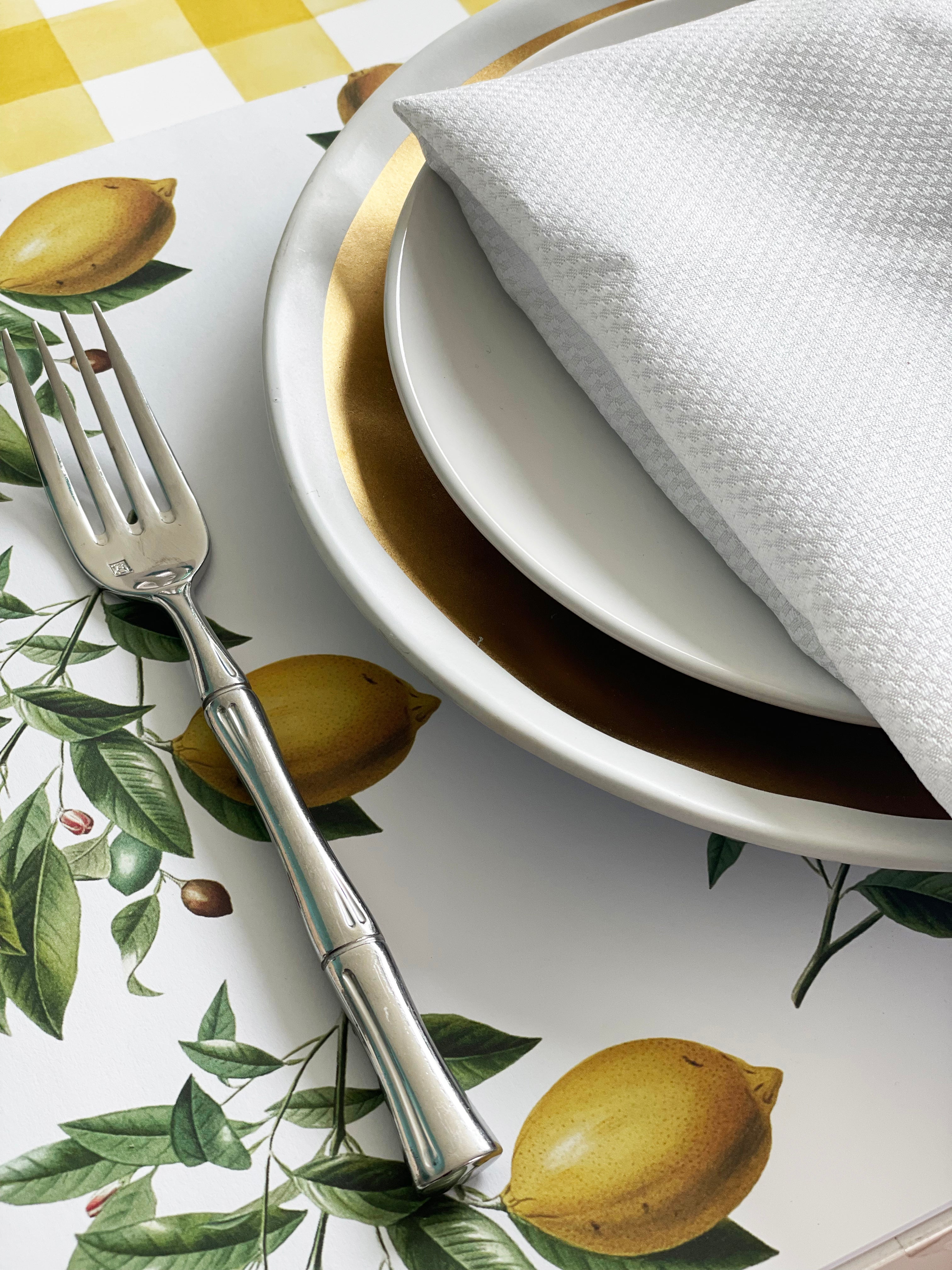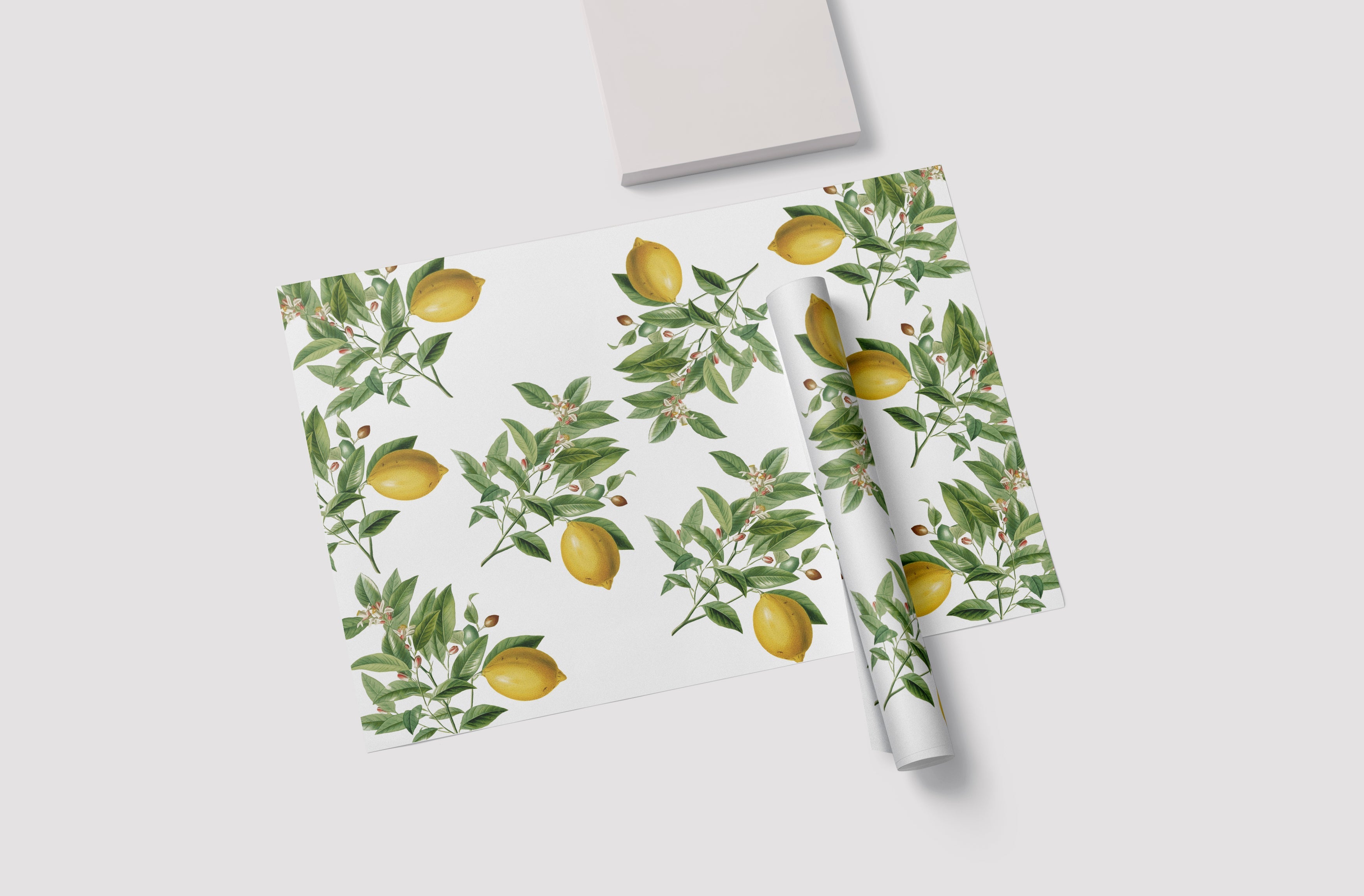 Style your dining area with our chic lemon paper placemats that feature green leaves and yellow lemons on a white background. Not only do they enhance your table décor, but they make it