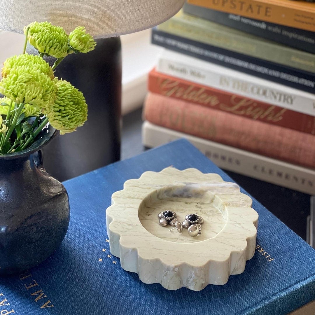 Scalloped and compact—the Mini Sun Flat is a five-inch catchall carved from solid stone.