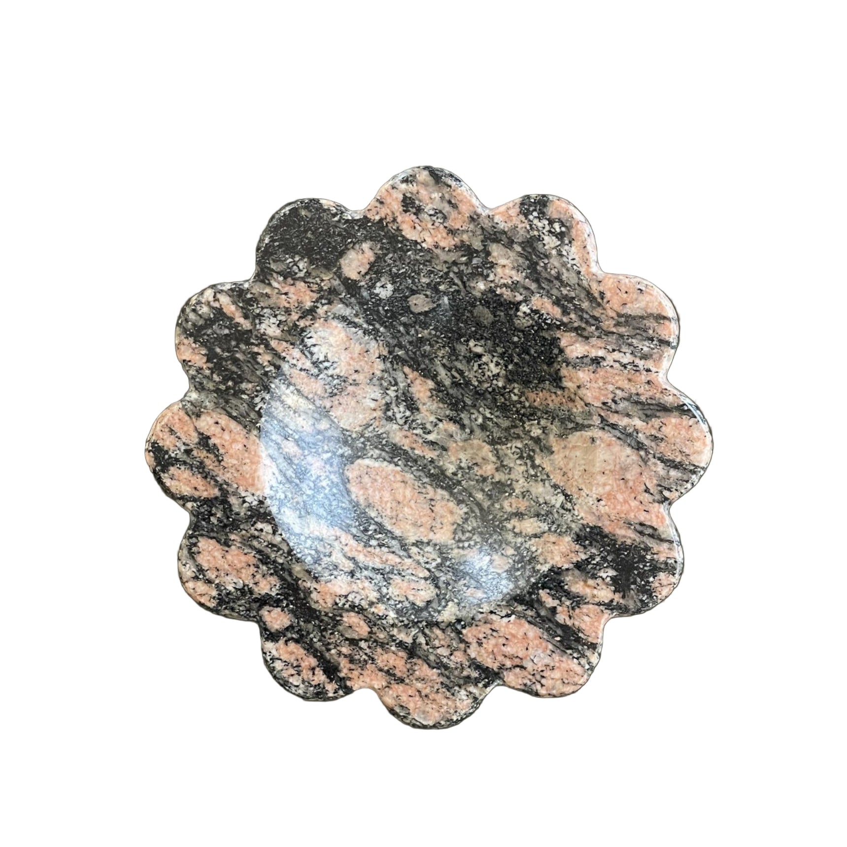 Scalloped and sculptural—the Mini Sun Scoop is a five-inch catchall carved from solid stone.