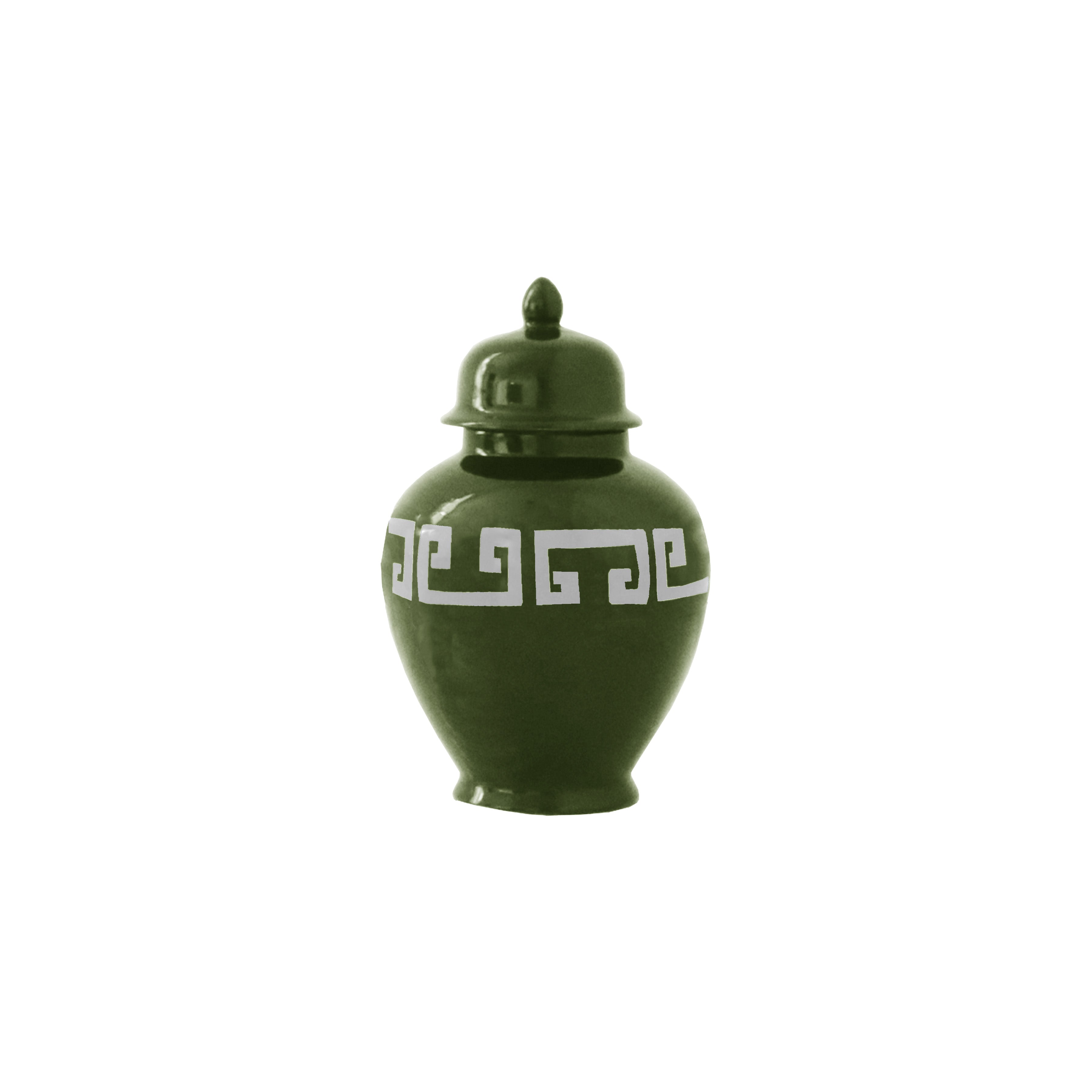 Clean, classic lines of the greek key lend a tailored and timeless look to our favorite decor staple- the ginger jar. These striking jars can be placed on a table or bookshelf, or grouped on a mantle, kitchen island, or tablescape. Have fun mixing and matching and moving them around your home!