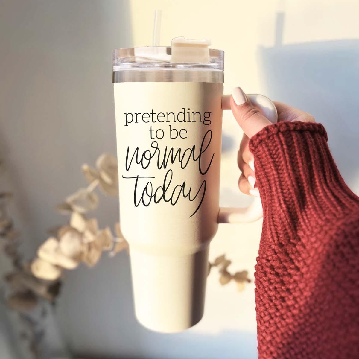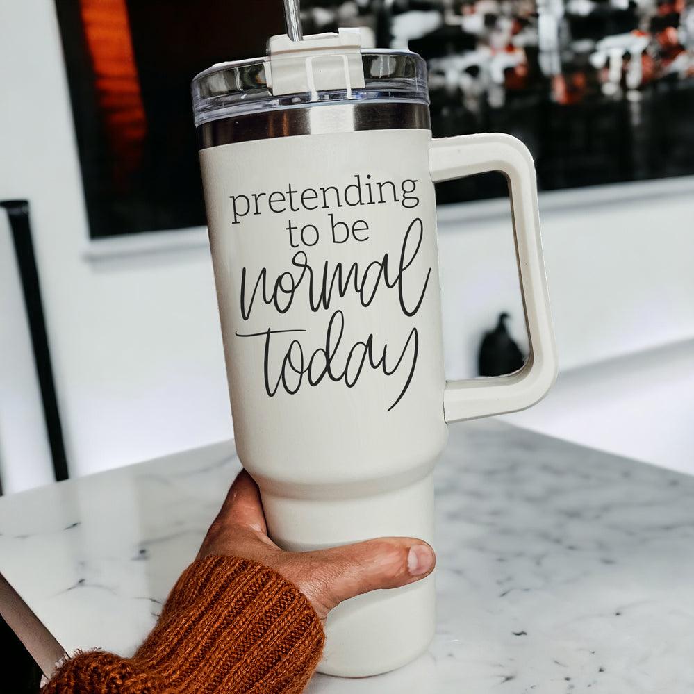 And let's talk about that design – "Pretending to be Normal Today" – because who hasn't felt like an imposter in the world of adulthood? Whether you're sipping on your morning pick-me-up or sneaking a little something stronger into your afternoon, this tumbler is your trusty sidekick in the battle against conformity.