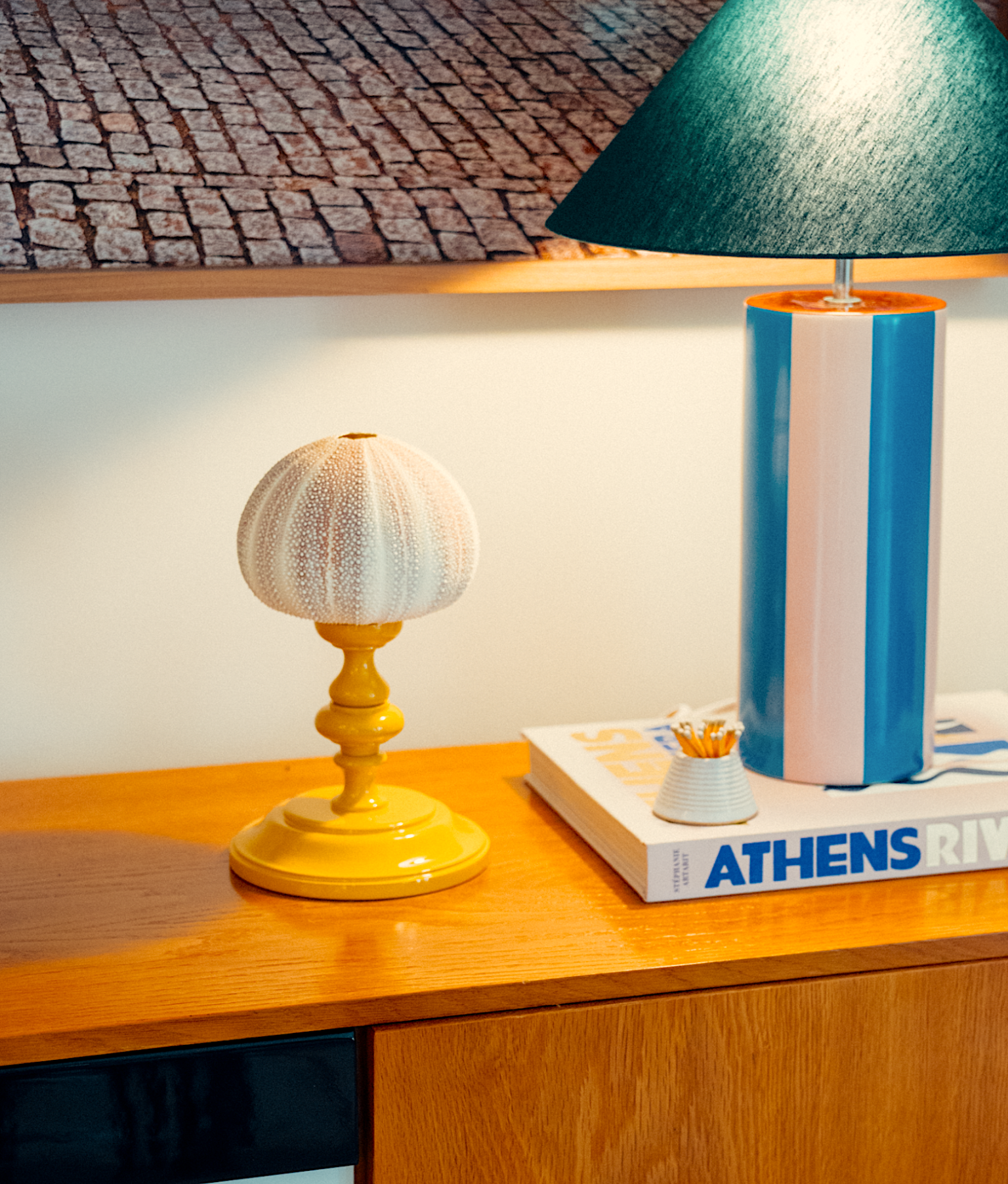 Handmade in Rome, Italy, this decorative object is painted with a high-gloss lacquer on wood. At the top of each piece you will find a one-of-a-kind sea urchin, making this item truly unique.