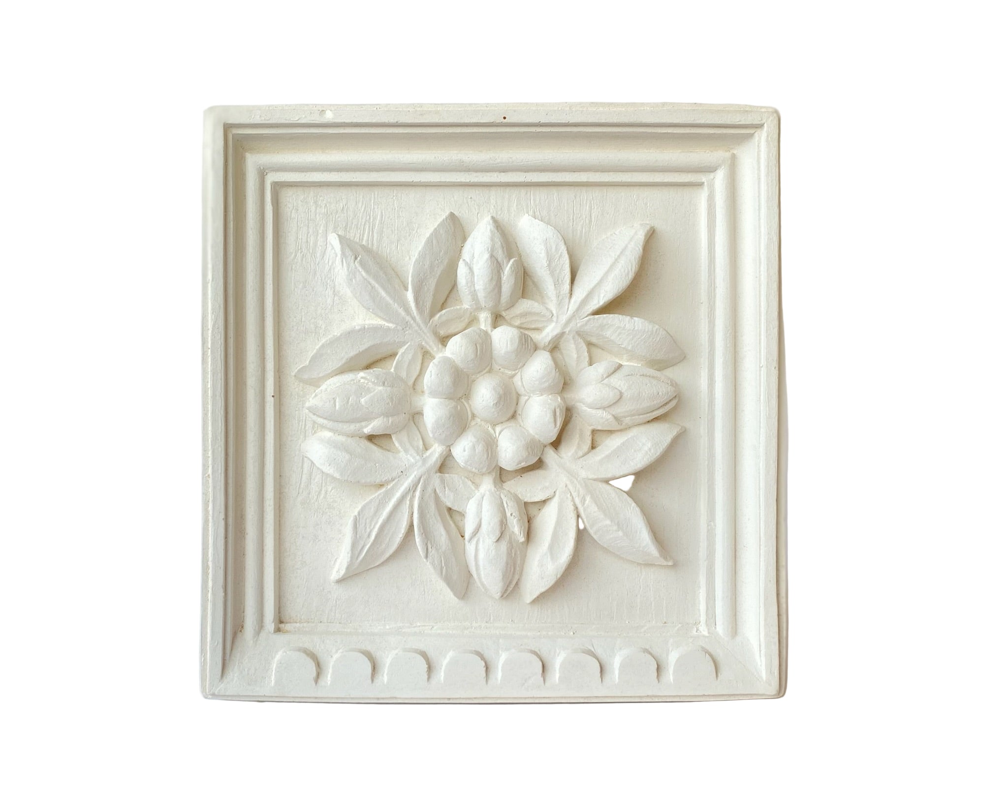 Like our Globe Plaque, this botanical features an eight-petalled flower, a symbol of cosmic harmony. Who doesn’t want to bring cosmic harmony into their home? Reproduction of an antique, hand-carved original.